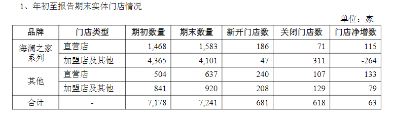 其中,直营门店净增248家(从年初的1972家增至2220家),占比从27.47%提升至30.66%;加盟店及其他净减少185家(从年初的5,206家减至5,021家),占比从72.53%下降至69.34%。