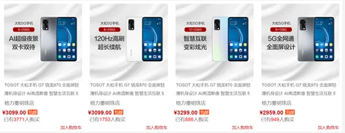 随后在2016年推出第二代产品,搭载骁龙820处理器与6英寸2K屏’;2017年第三代色界机型发布,定价3200元。2020年起品牌更名为大松,推出首款5G手机;2021年发布TOSOT G7,强调智能家居生态互联功能。2023年年5月媒体报道称其核心团队解散,官网同期无法访问,官方微信公众号自2020年4月起停止更新,但格力回应称手机研发持续进行。董明珠也表示:"前段时间网上说我们手机不做了,那是不可能的,我们一定要坚持做。"不过,小柴在格力商城,也就是格力董明珠店发现,目前已没有手机这一分类,检索手机关键词,也是没有搜到相关信息。