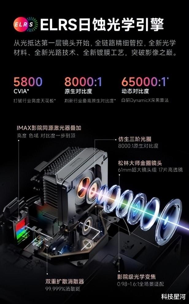 光学变焦投影仪当贝S7 UltraMax最震撼的莫过于5800CVIA流明的亮度,以及8000:1 的原生对比度,动态对比度高达65000:1,通过自研ELRS日蚀光学引擎和48颗激光器阵列的组合,配合偏振合光技术,光效密度提升 250%,亮部高亮通透,暗部细节分毫毕现。