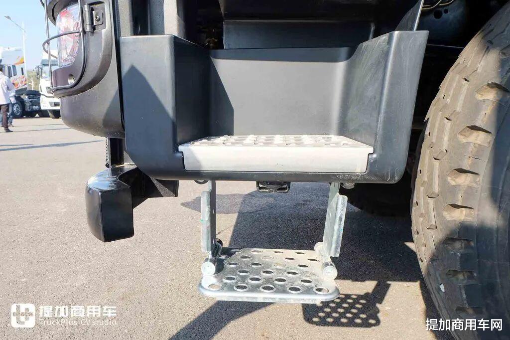 此外,X7-C驾驶室登车踏板的最下一级采用活动式设计。在方便驾驶员上下车的同时,有效避免对车辆接近角造成影响,碰撞时也更不易受损,兼顾了通过性与可靠性。