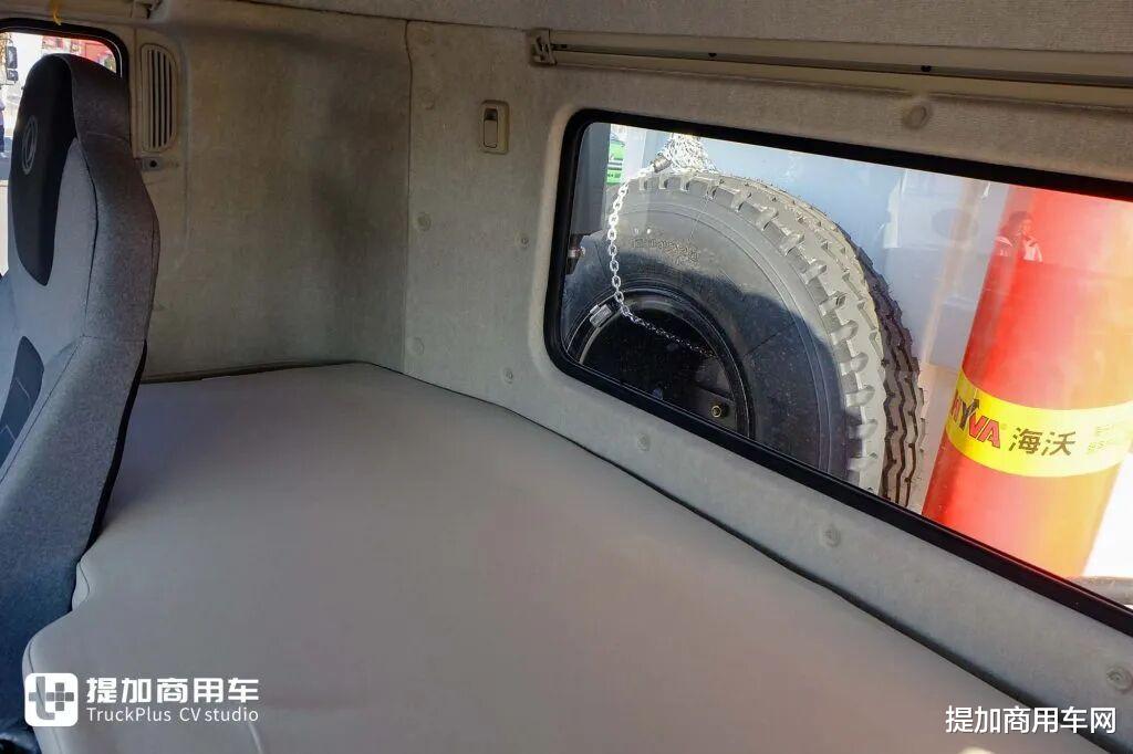 此外,车辆卧铺宽度拓展至850毫米,为驾驶员提供宽敞舒适的休息空间,在工程车类别中表现领先。驾驶室还设有容积达50升的右侧储物箱,方便收纳随车工具与个人物品,人性化配置满满。