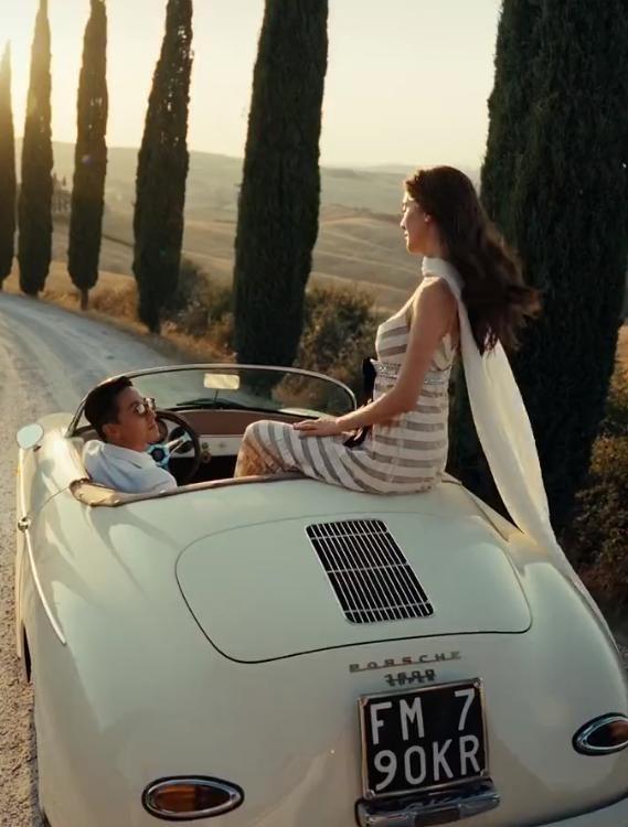 开着古典奢华的豪车,新人一起飞驰在古堡庄园的浪漫爱情路上,此时的吴千语活像一个梦幻世界之中公主。