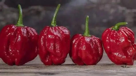前任吉尼斯世界纪录最辣的辣椒,外表呈亮红色,大小如1澳大利亚元硬币。黄灯笼辣椒的一种,是特立尼达莫鲁加毒蝎的一个衍生种。