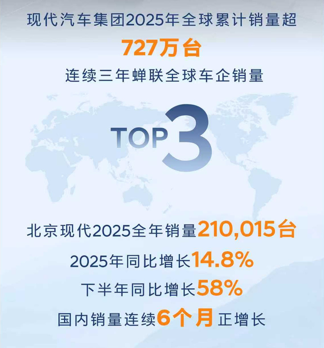2025年,面对市场竞争与行业转型的双重重压,北京现代取得如此成绩的关键在于依托股东双方战略协同,股东双方为北京现代联合增资80亿元,为其全面转型注入资本基础。同时,现代汽车集团继续蝉联全球第三大汽车集团,年交付727万台;北汽集团连续12年跻身世界500强,为合资板块资源协同。