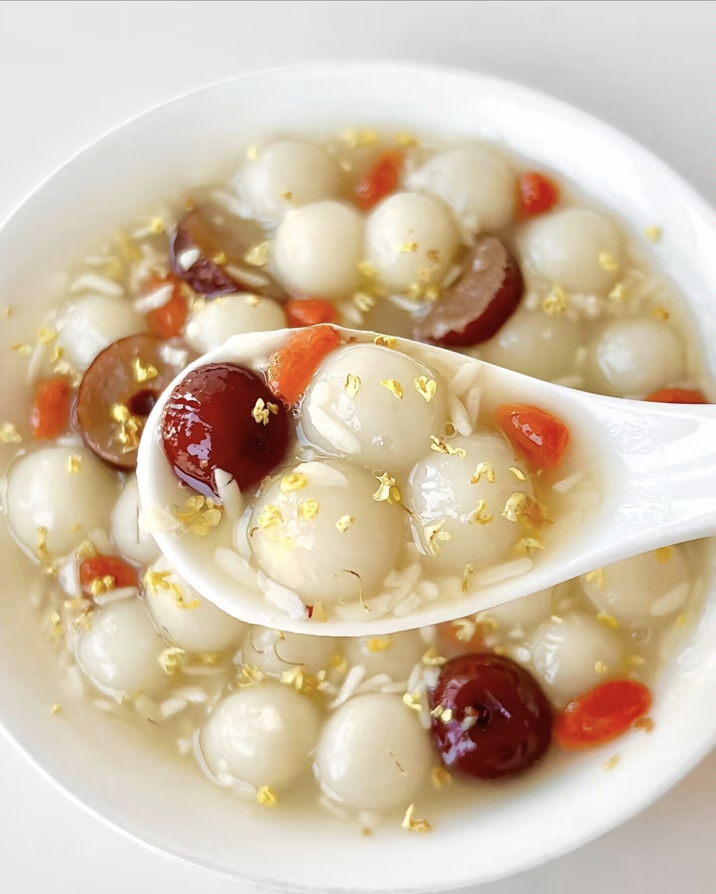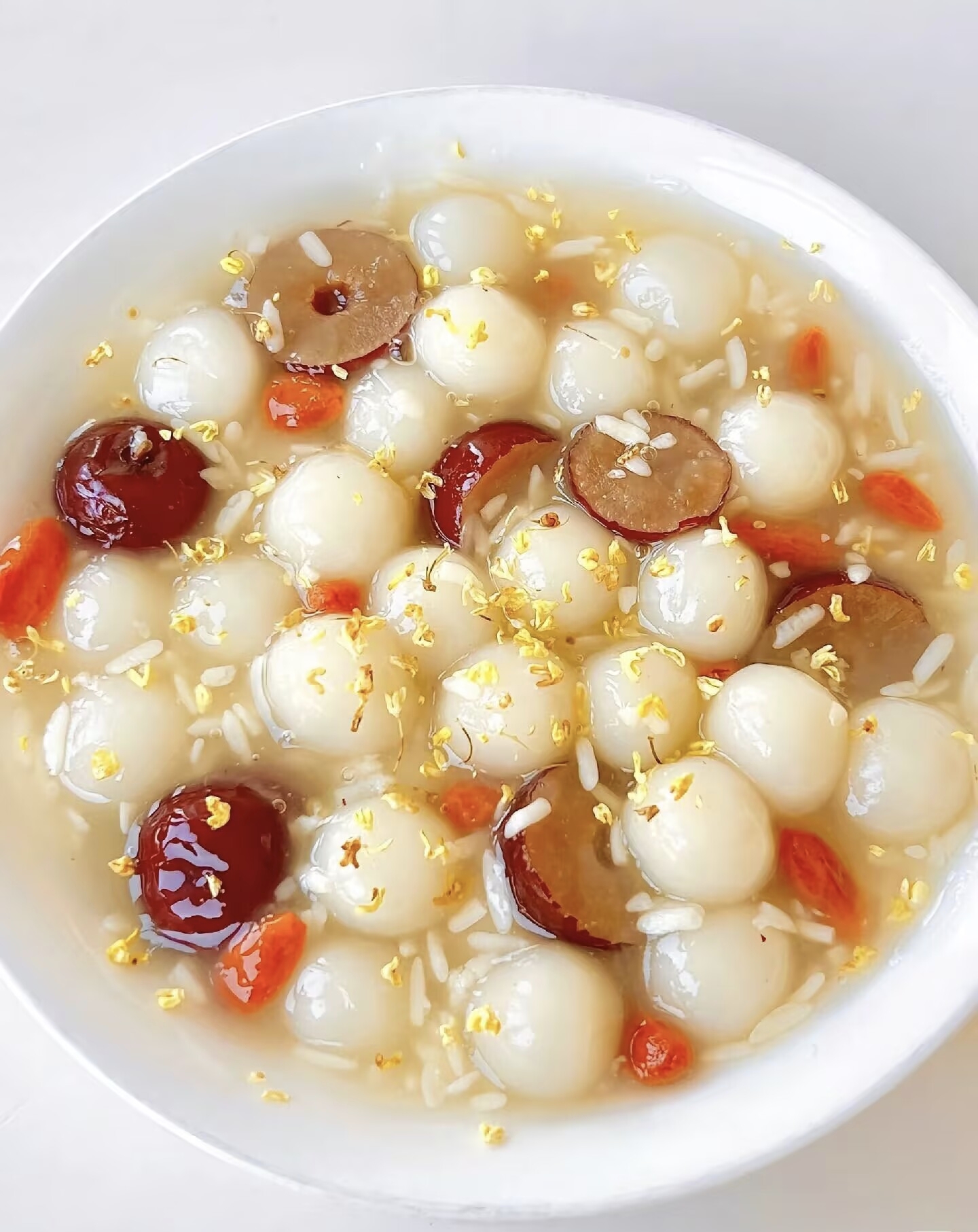 小丸子从凉水里捞出来,沥干水分,轻轻放进酒酿汤里。撒上一小撮干桂花,再放几粒枸杞点缀,盖上锅盖焖一分钟,让桂花香彻底渗透。打开盖子的瞬间,整个厨房都是秋天的味道,那种甜丝丝、暖洋洋的香气,能瞬间治愈所有的不开心。