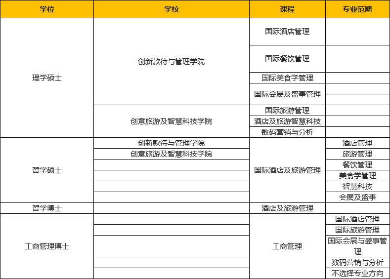有关专业环境的申请人,务必有1-2年的管理方面工作经验,包含酒店业、旅游行业,或别的行业,实际看专业规定