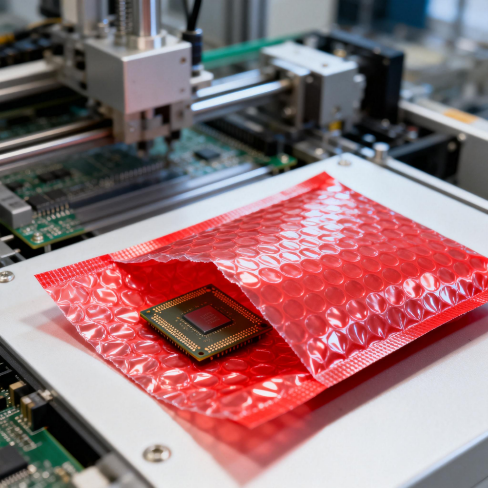 包装高价值芯片、精密电路板物品需长期存储或多静电环境运输需要重复使用的包装选防静电气泡袋当: