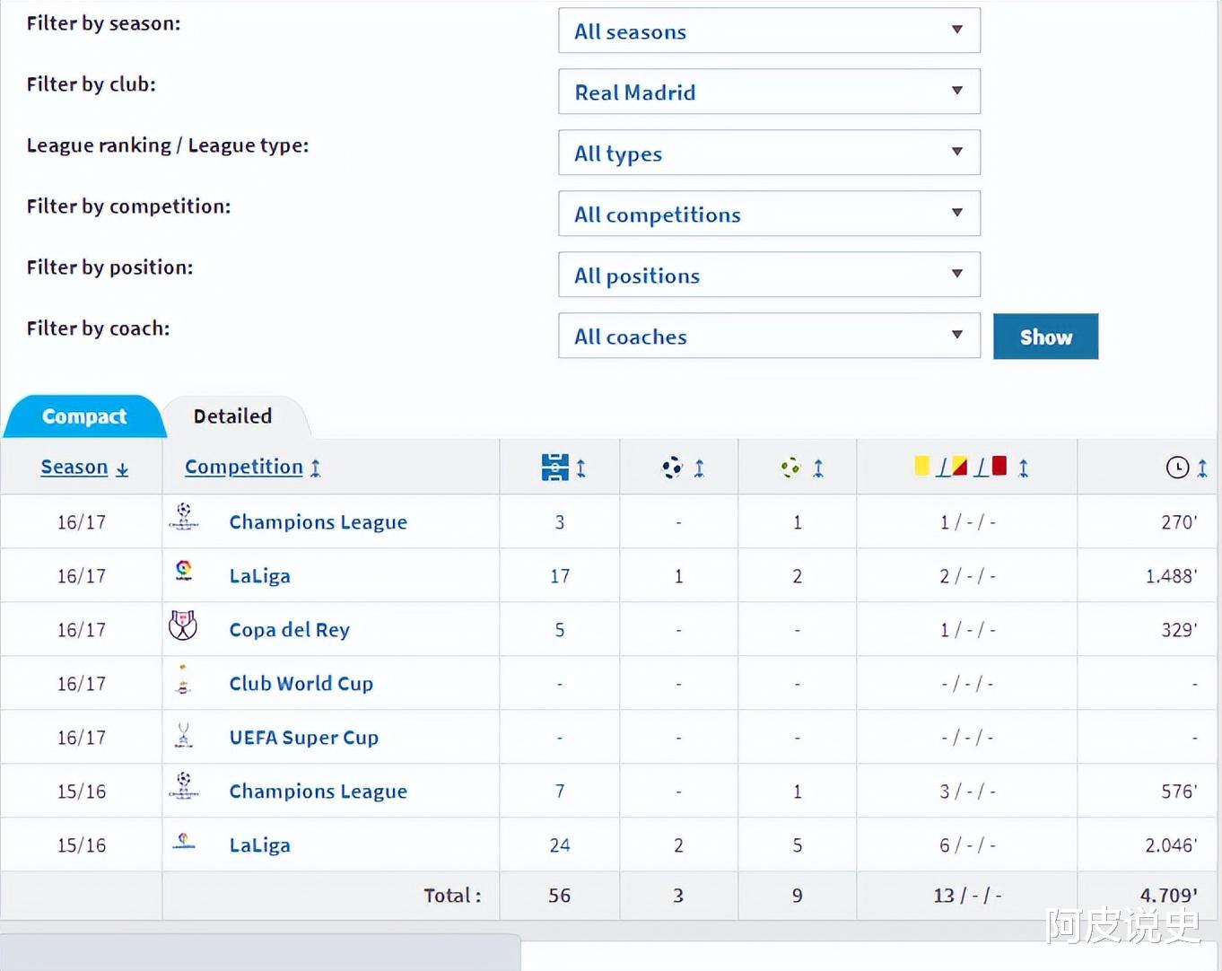 卡塞米罗(Casemiro)。13年一月,当皇马官方宣布租借圣保罗球员卡塞米罗为卡斯蒂利亚效力至赛季结束时,恐怕没有多少人在意这笔交易。13年4月20日,西甲第32轮主场对阵贝蒂斯的比赛中,卡塞米罗首发出场打满全场,迎来了皇马首秀。赛季结束卡塞米罗被皇马买断,13/14赛季卡塞米罗成为皇马一队一员,获得了25次出场机会,随队获得了欧冠和国王杯冠军。14年夏天卡塞米罗被租借给波尔图,表现不俗的他在赛季结束被波尔图买断,但随即又被皇马回购。回到皇马后卡塞米罗逐渐成为皇马主力后腰,尤其是在齐达内成为皇马主帅后他的位置越发稳固,和魔笛、克洛斯组成的典礼中场更是帮助皇马豪取欧冠三连冠。卡塞米罗一共代表皇马出场336次(25.852'),打进31球助攻29次,随队获得了五座欧冠、三座西甲、一座国王杯、三座世俱杯、三座欧超杯、三座西超杯冠军。22年夏天卡塞米罗转会曼联,结束了自己的白衣生涯。