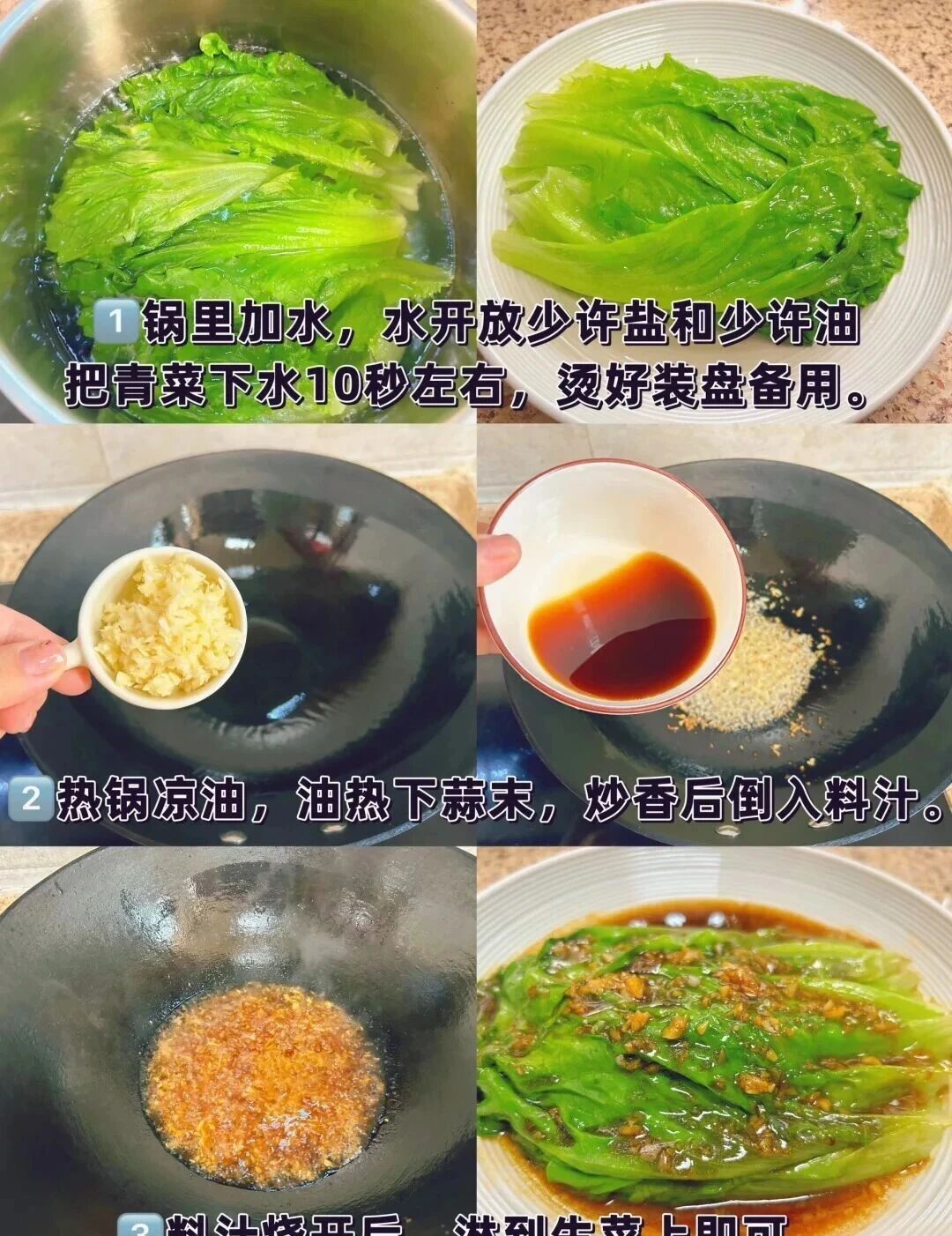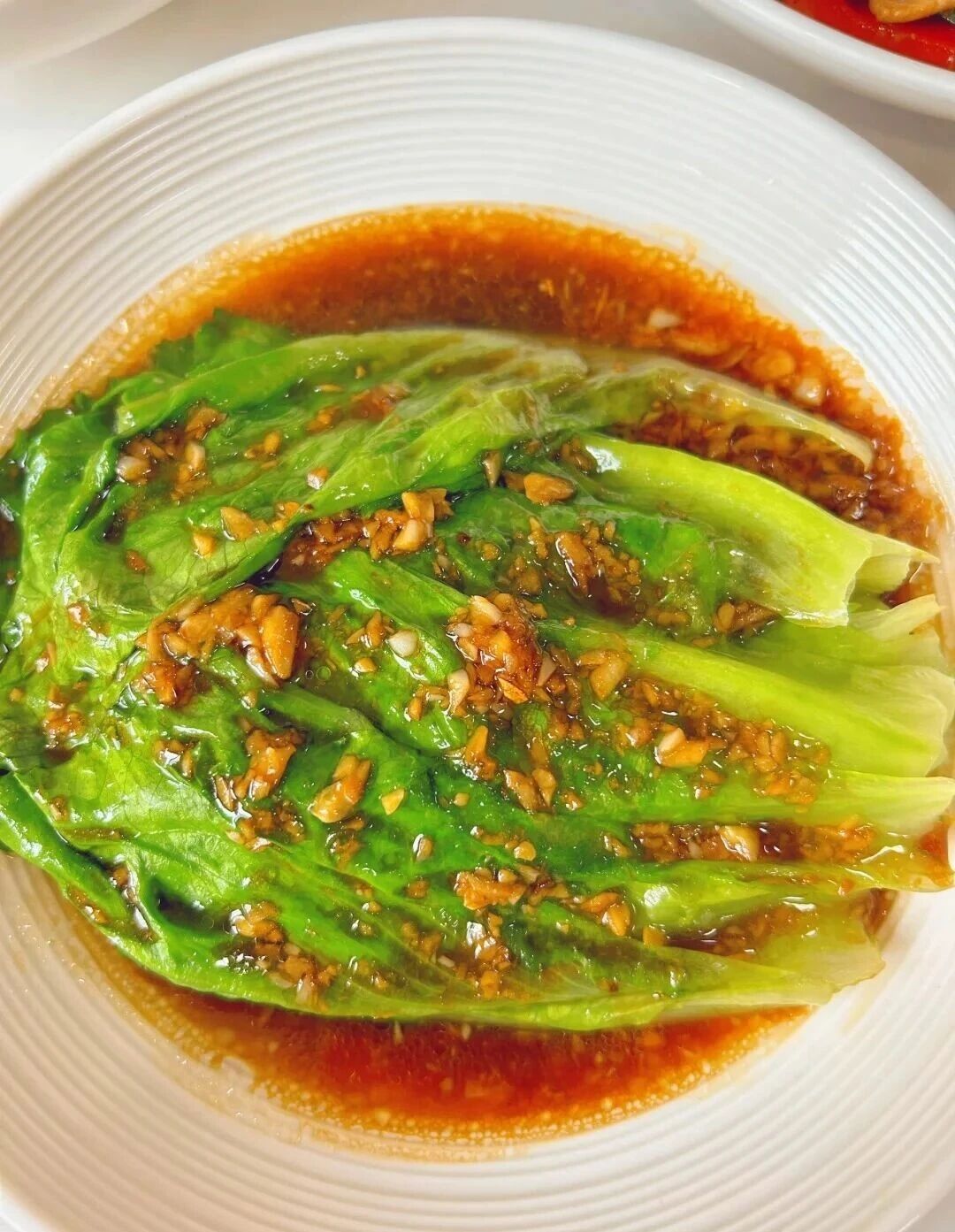 3. 热锅少油爆香蒜末,倒入料汁煮至沸腾,均匀淋在生菜上即可。