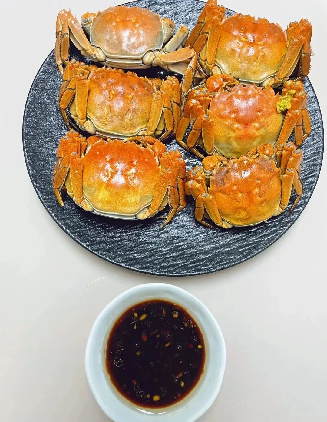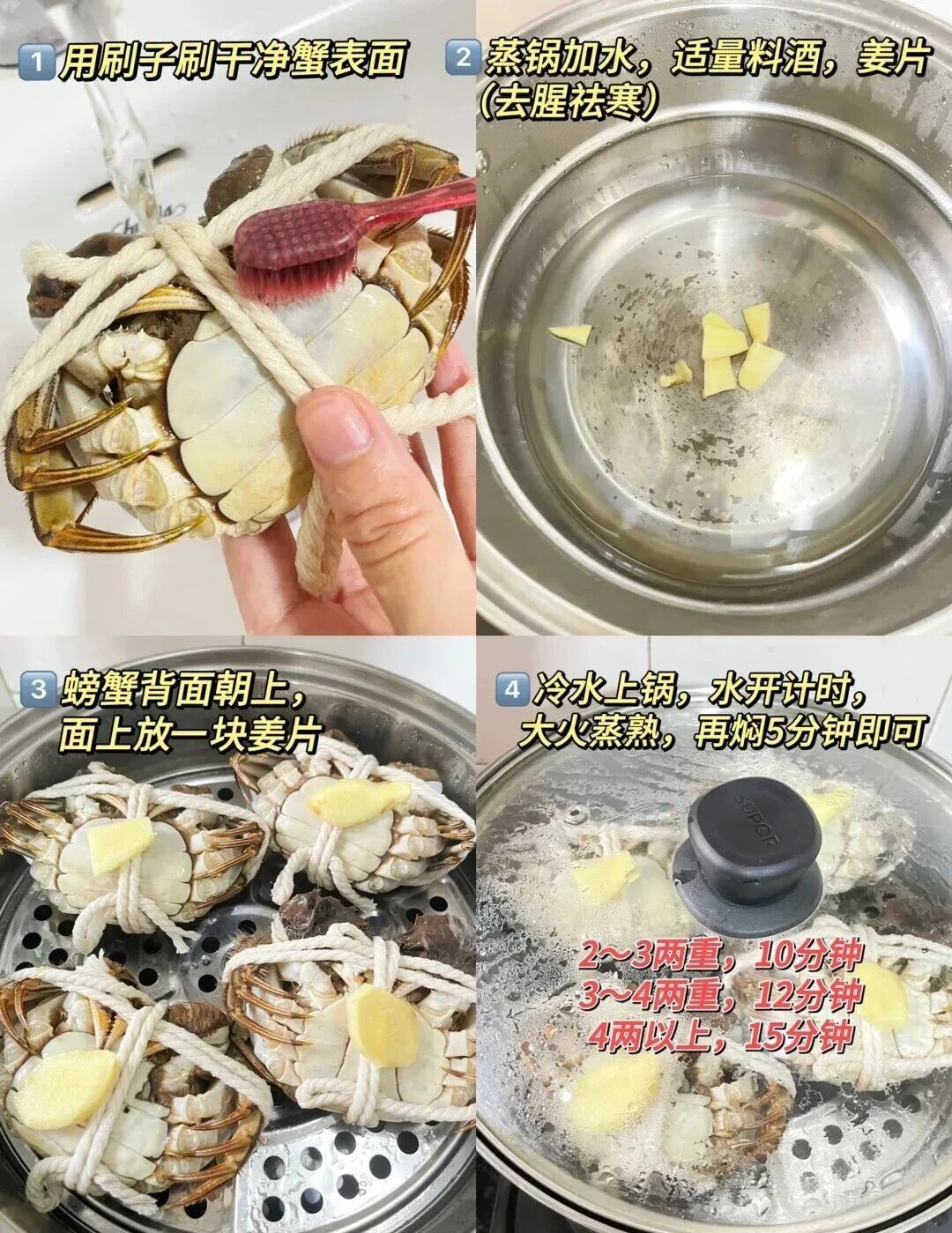 2. 螃蟹腹部朝上摆放,每只蟹面铺一片生姜。