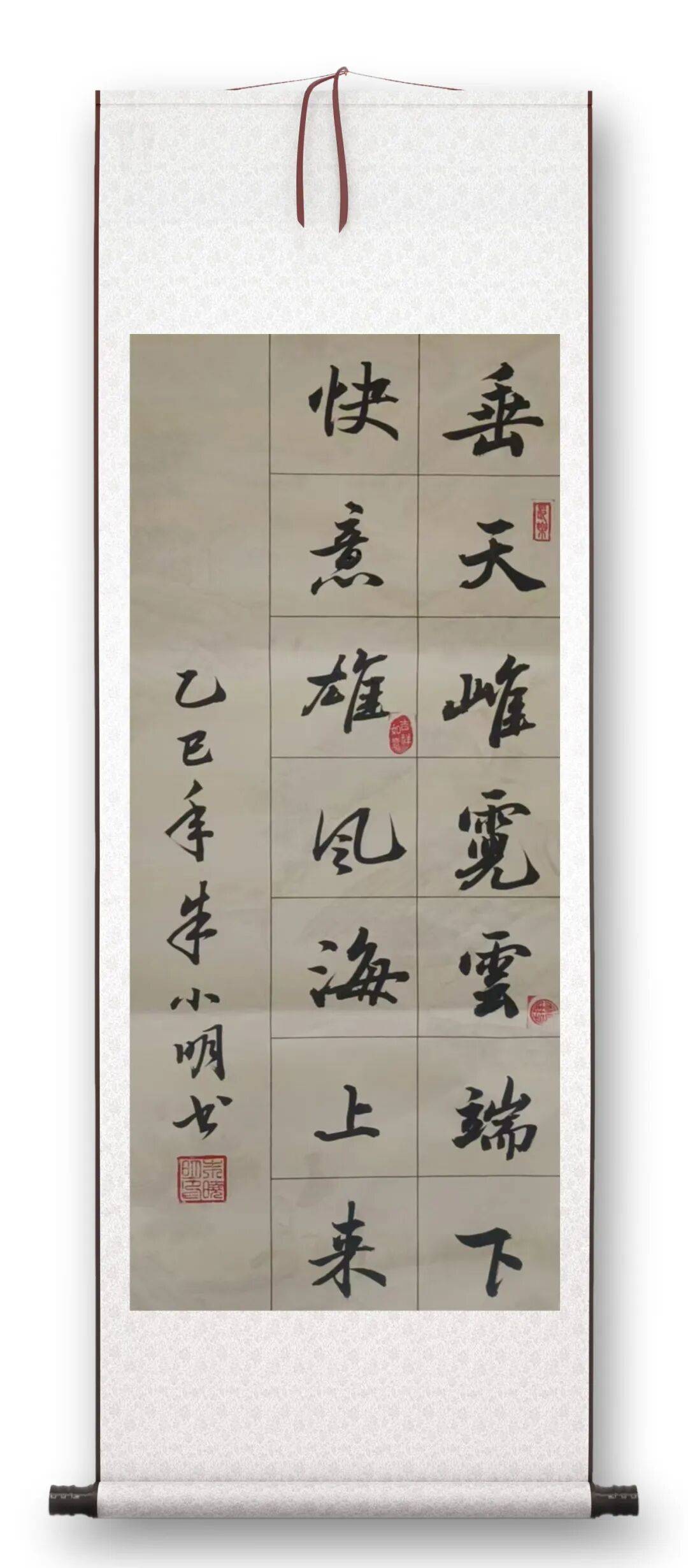 在行笔上,朱钇名先生注重力度的控制,线条时而粗壮有力,时而纤细灵动,展现出极强的线条表现力。在收笔上,他注重回锋与出锋的结合,有的收笔回锋,圆润饱满;有的收笔出锋,飘逸洒脱。尤为难得的是,朱先生的笔法具有很强的节奏感和韵律感,他通过对笔法的巧妙运用,使线条富有变化,形成了独特的艺术节奏,让观者在欣赏书法作品的同时,也能感受到一种美的享受。