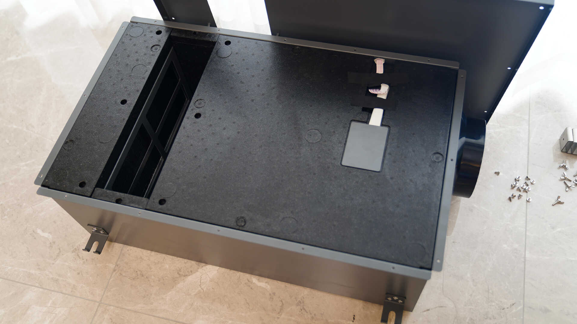 从结构就可以看到土豆这款新风机的滤芯拆装口位置,吊顶位置也是非常容易拆装的,但是多达六个螺丝,考虑下兄弟们拆滤芯的便利性?