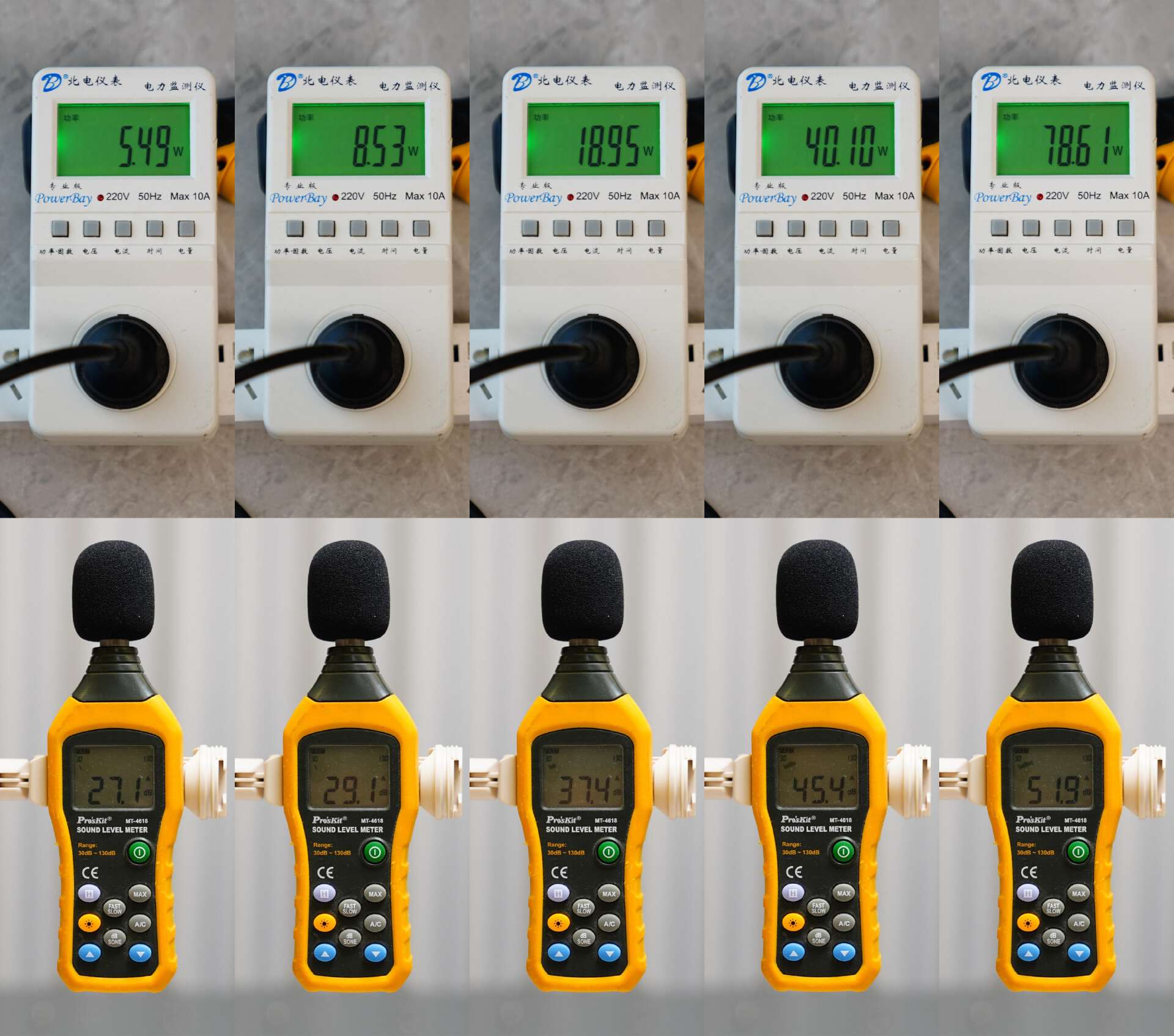 为了做测试,本人是把所有可以产生噪音的(散热)设备都停掉了,背景噪音也达到了惊人的26.9dB,待机功耗约为3w。