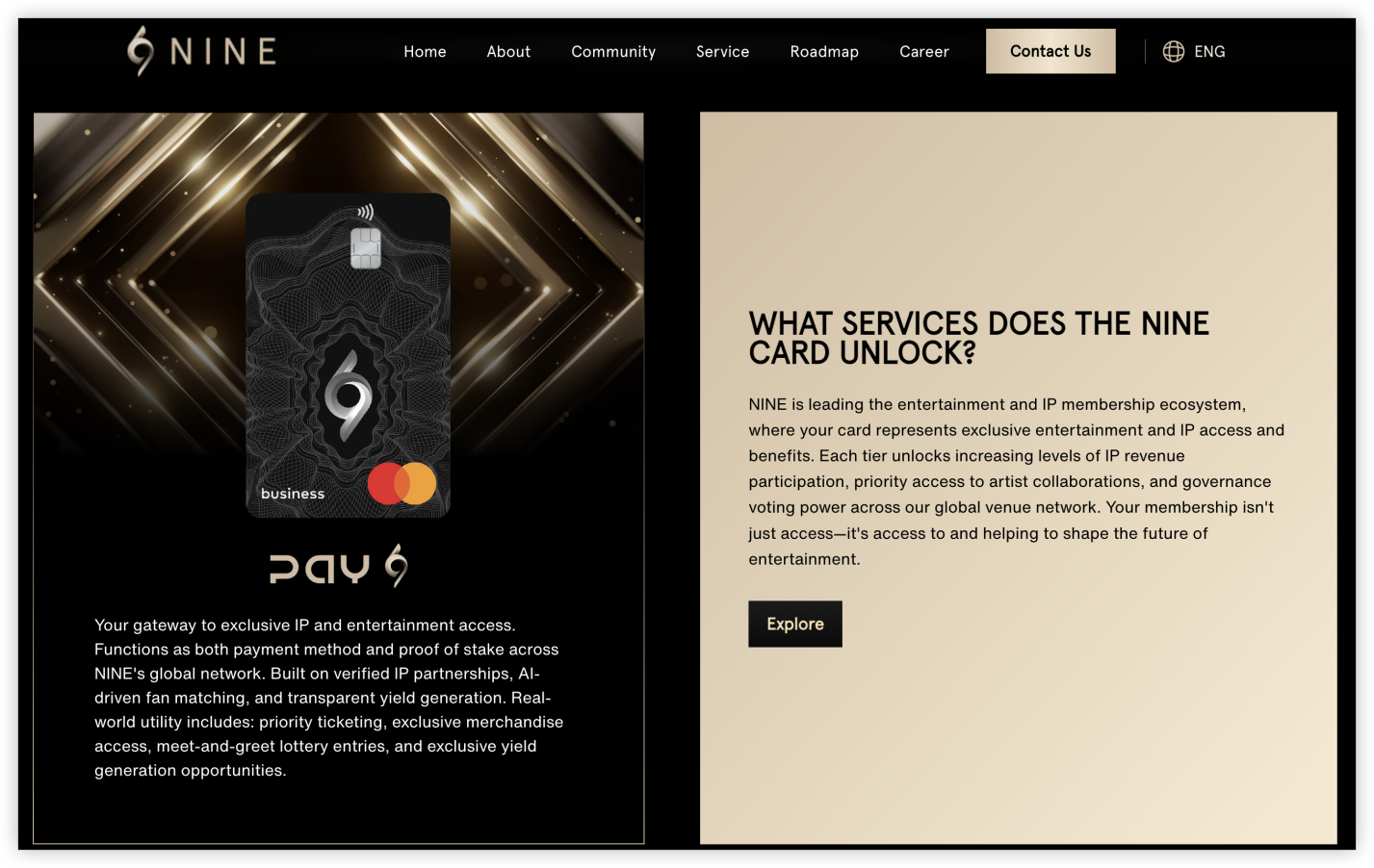 为了让这一理念落地到真实生活,Nine.fun以支付为核心入口,将加密资产的应用场景延伸至现实世界。通过PAY9支付卡,用户可在全球合作的场馆、餐厅与娱乐空间中进行支付消费,并累积平台积分或权益值;未来这些权益将与Nine.fun生态代币体系打通,用于兑换体验、升级会员等级或参与社区治理。