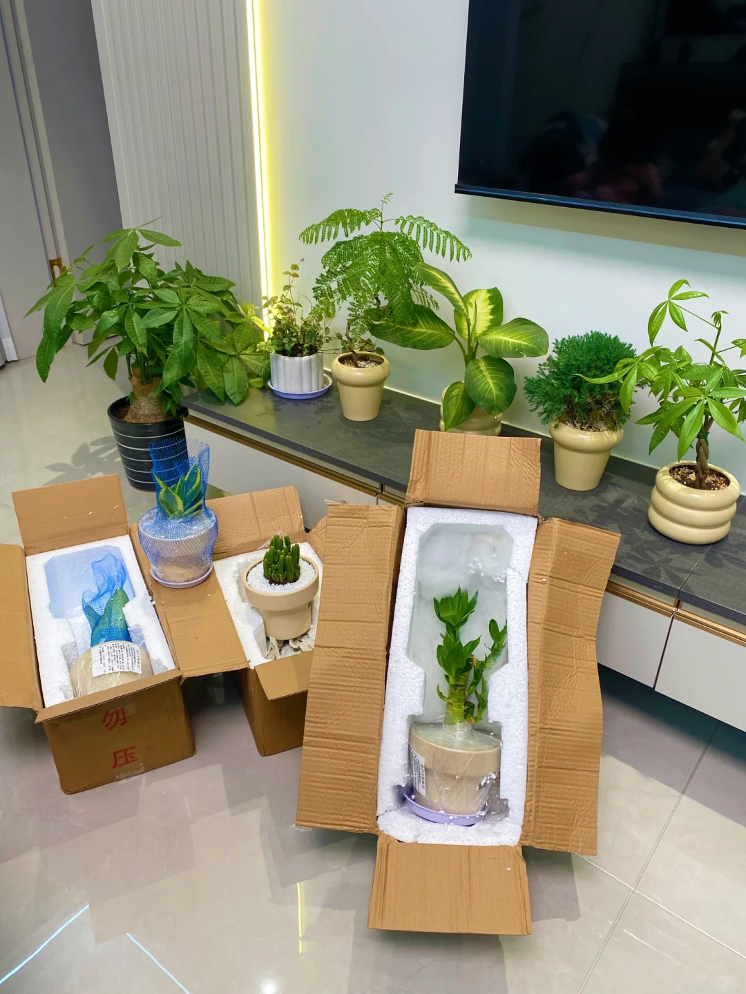 为了让盆栽平安的送到买家的手中,通常会包装上泡沫箱、保湿材料等这些东西。
