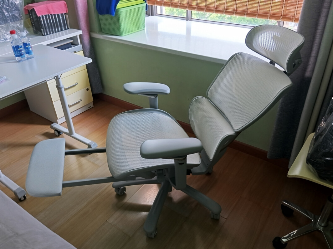 整体坐感偏均衡,不挑坐姿。直立办公时,背部贴合度高,腰不会悬空;后仰时,145°无级后仰加上联动支撑,身体受力很均匀。隐藏式腿托在午休时很实用,直接能原地半躺,不用再找地方休息。肩颈和下腰的疲劳感,相比普通椅子会轻不少,连续坐七八个小时也不太容易累。