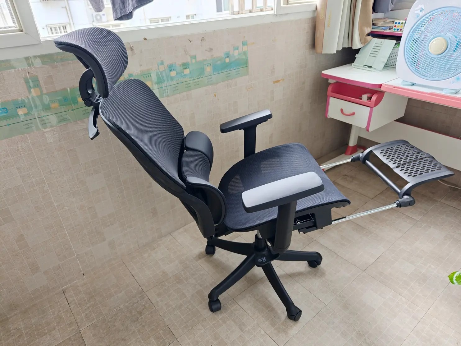 网布透气性不错,夏天久坐不闷。整体做工和用料符合中端定位,铝合金脚架稳固。它更适合想在办公椅上兼顾一点“放松感”的用户。