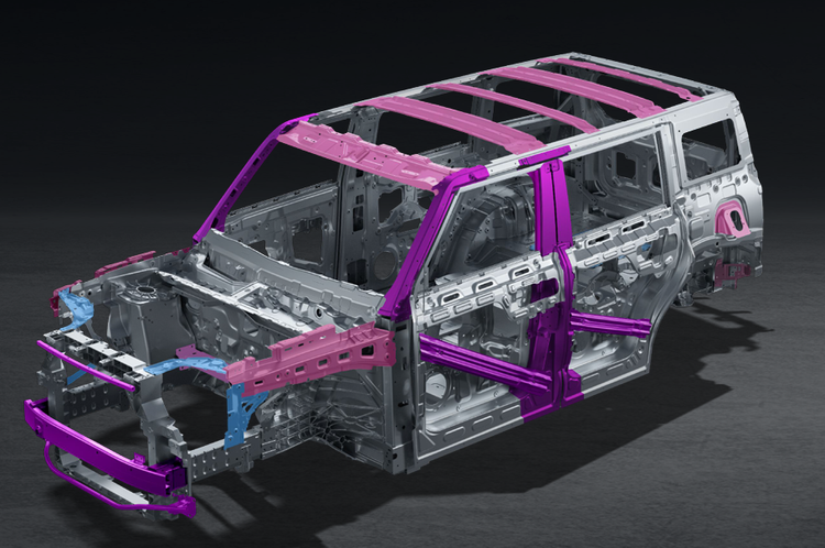 极致坚固: 车身扭转刚度高达31812Nm/deg,为强大的越野性能和车身安全提供了金字塔般的底座。