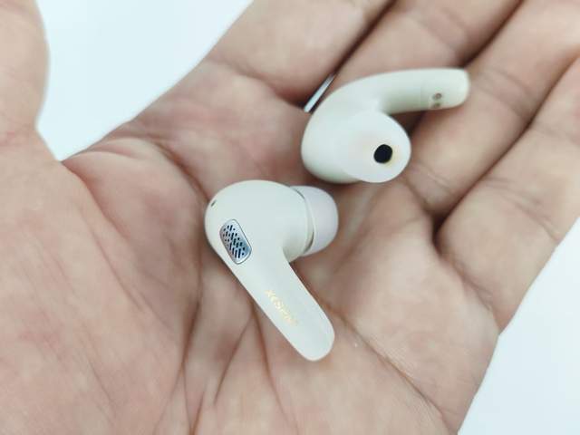 耳机采用入耳式设计,单耳仅重4克,将其置于掌心几乎没有存在感。腔体线条流畅自然,采用了仿生人体工学设计,能够精准地贴合耳道轮廓,它既不会出现松垮晃动的情况,也不会对耳道产生挤压的问题,好似一片轻柔的羽毛挂在那里。再加上三套不同尺寸的亲肤抗菌耳帽,完美适配不同大小耳道,即便长时间佩戴,依然能感受到那份舒适惬意。