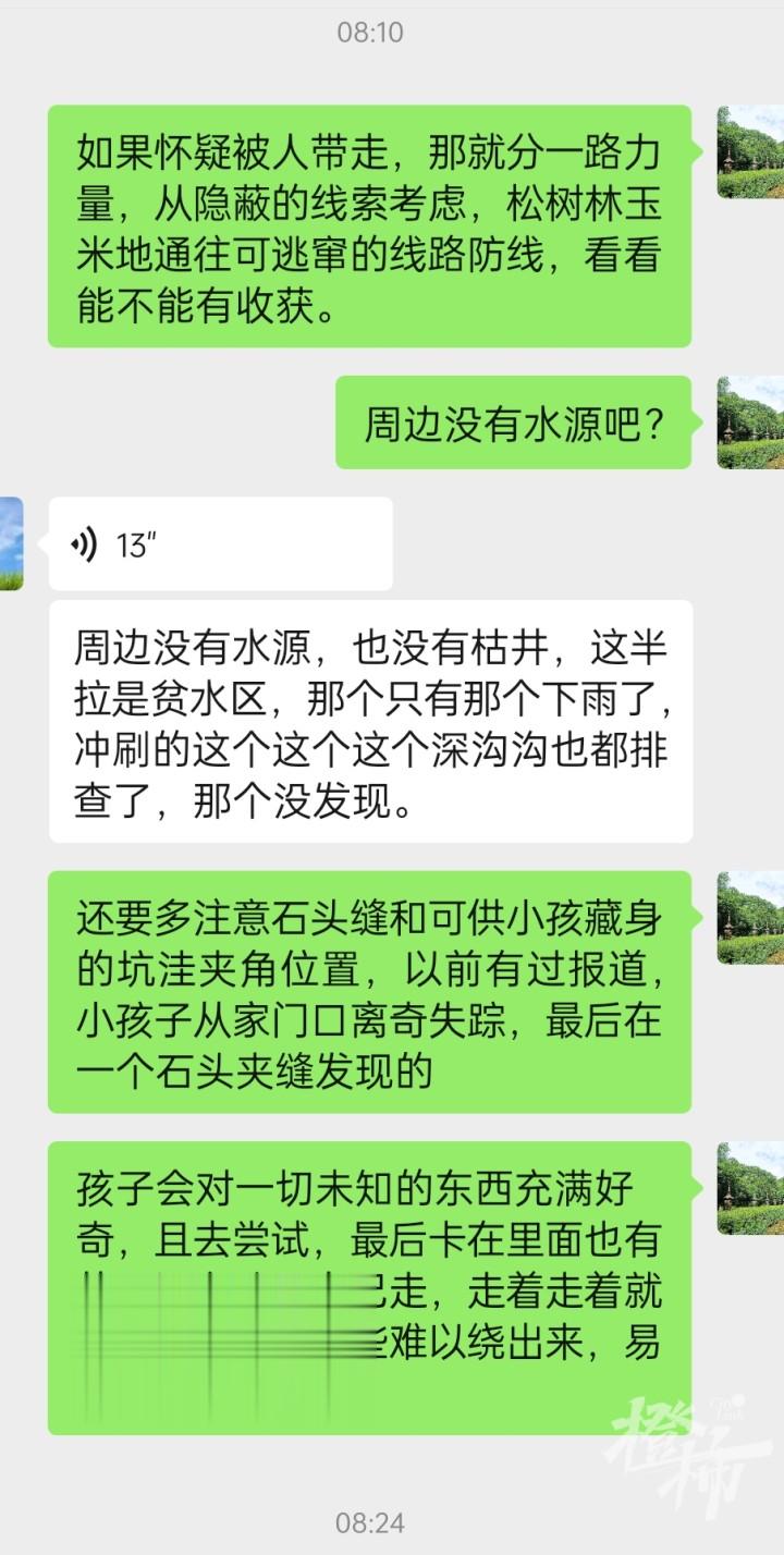 记者一早还给暴镇长沟通分析出点子,希望多注意石头缝和可供小孩藏身的坑洼夹角位置,以前有过相关报道,小孩子会对一切未知的东西充满好奇,也可能孩子走着走着就迷路了……
