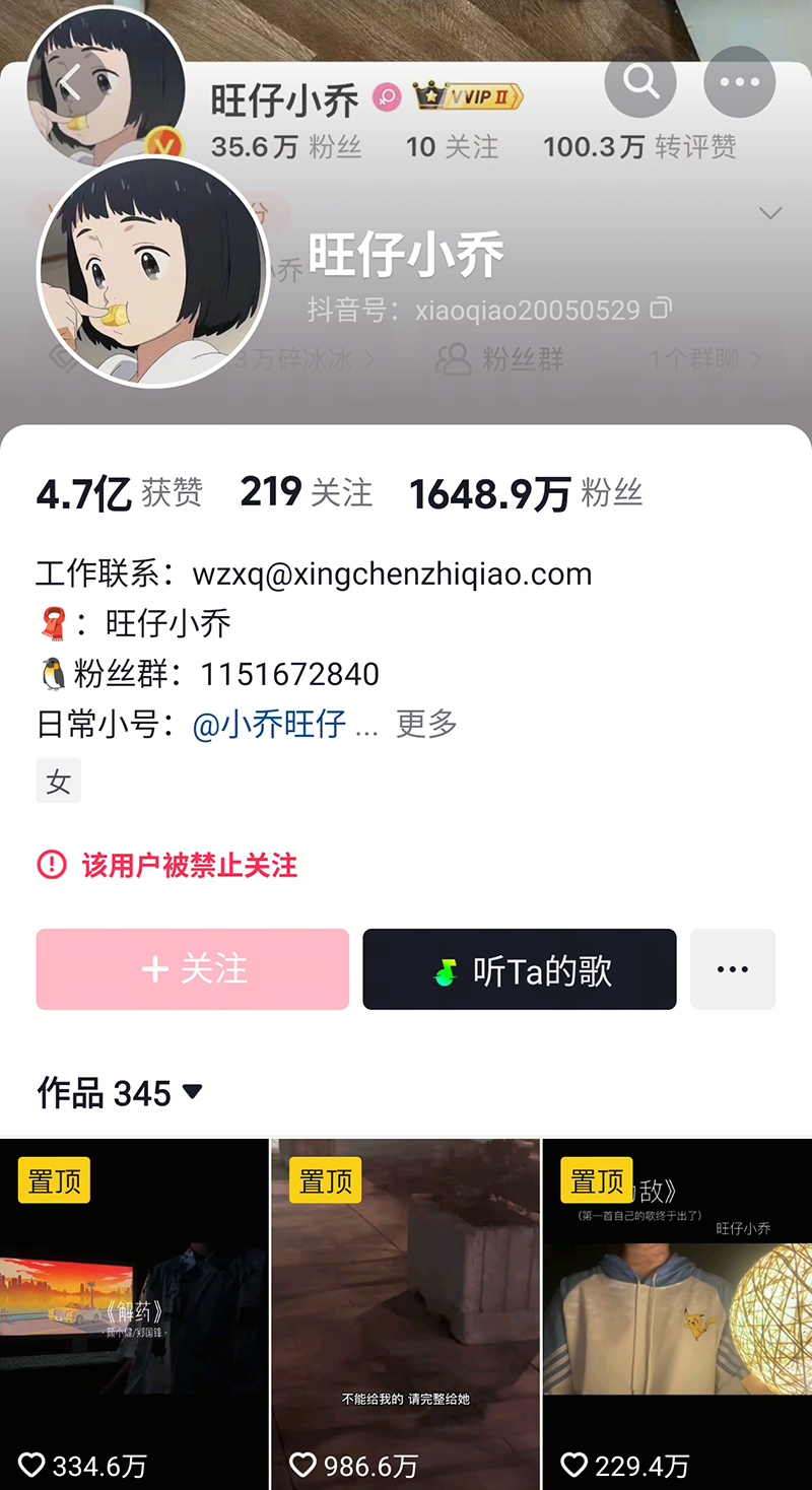 最近一段时间,网红旺仔小乔几乎已经彻底消失于公众视野中。从两千三四百万粉丝,“咔咔”一顿掉粉近七百万,正处于“被禁止关注”状态,看来要翻身实在很困难。