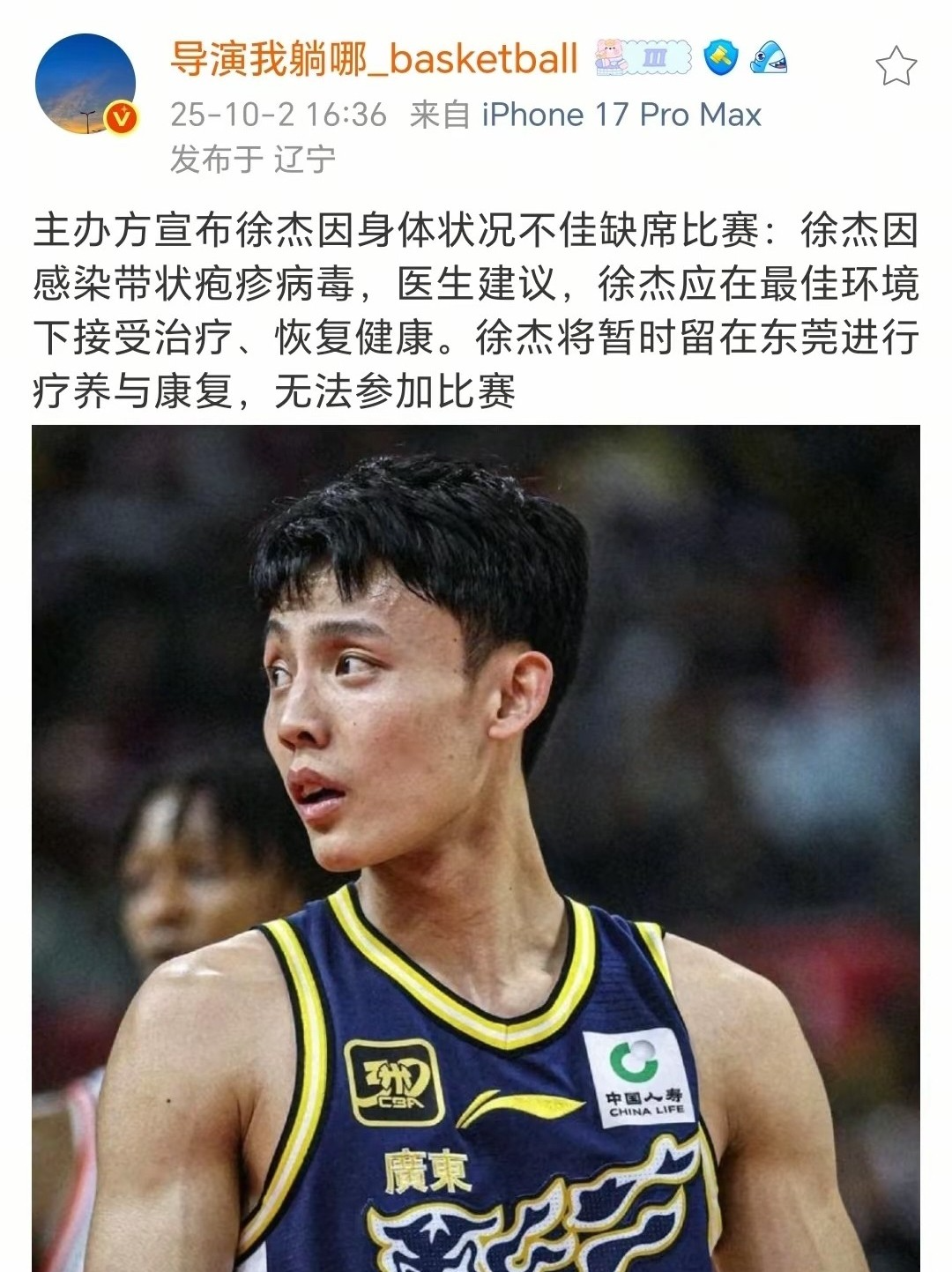 同时就在昨天经多方权威媒体确认,广东队核心后卫徐杰也患上了带状疱疹,民间俗称就是“腰缠龙”。这种病虽然不严重,但是身上长出的疱疹非常疼痛,因此徐杰短期内无法参加比赛,好在近期仍处于休赛期。