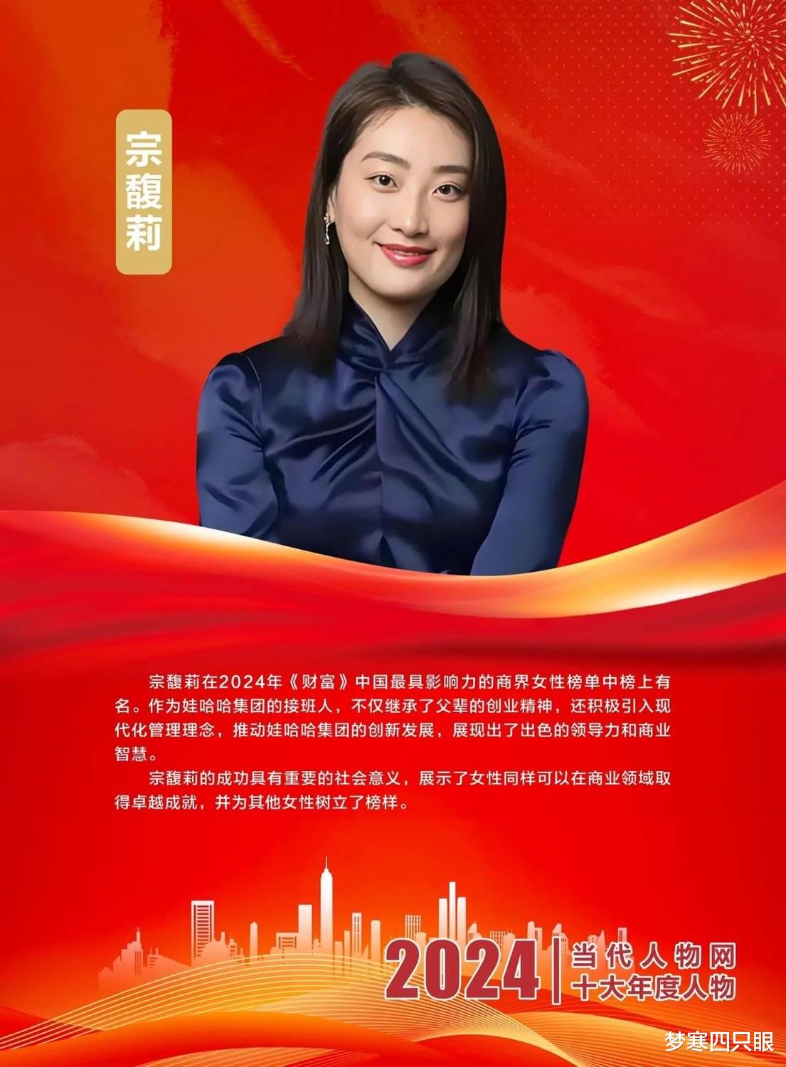 ▋颁奖词:宗馥莉在2024年《财富》中国最具影响力的商界女性榜单中榜上有名。作为娃哈哈集团的接班人,不仅继承了父辈的创业精神,还积极引入现代化管理理念,推动娃哈哈集团的创新发展,展现出了出色的领导力和商业智慧。