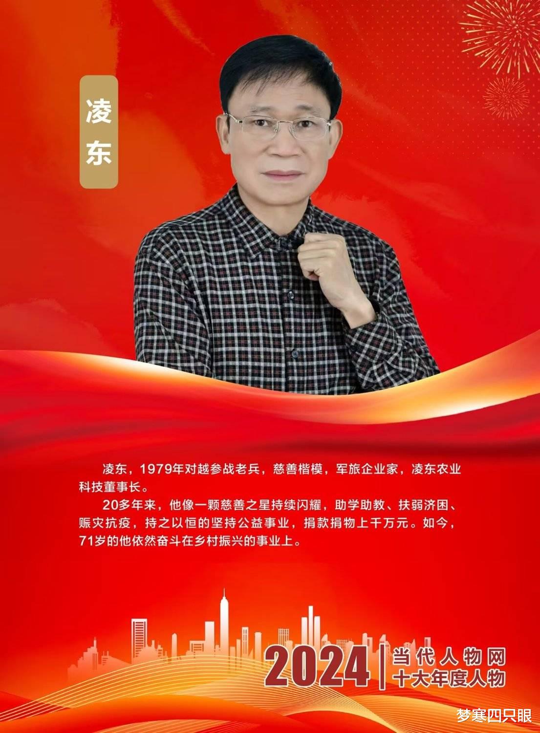 ▋颁奖词:凌东,1979年对越参战老兵,慈善楷模,军旅企业家,凌东农业科技董事长。