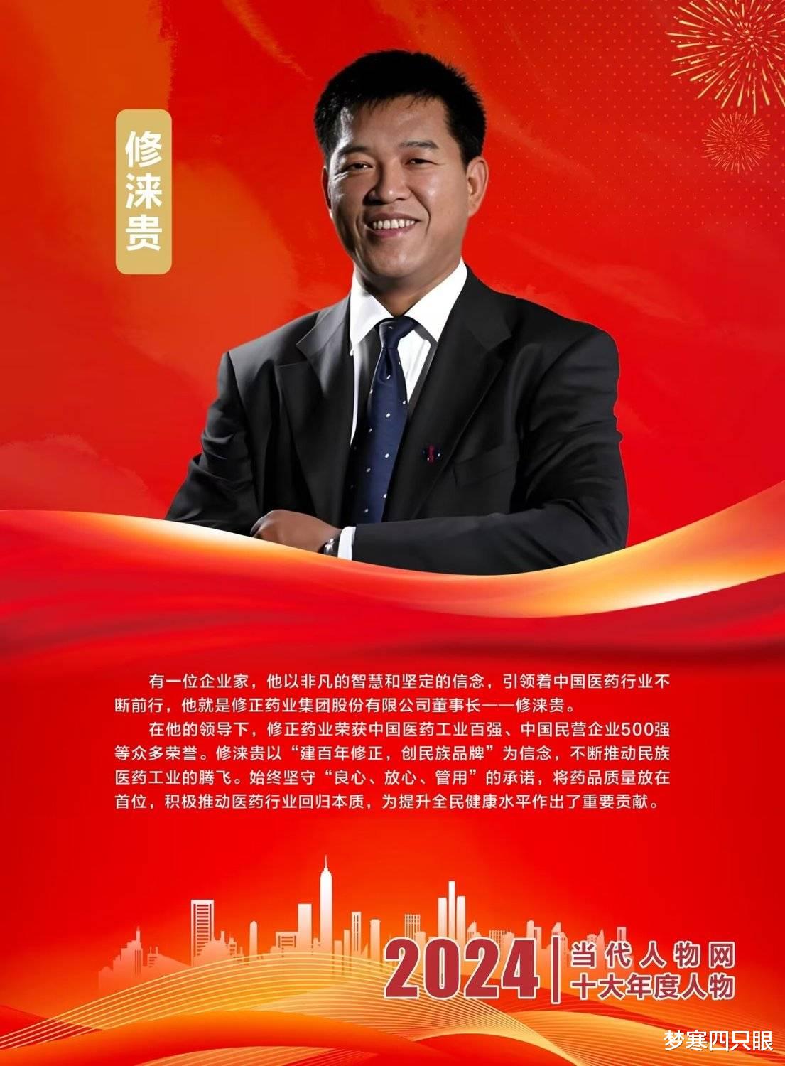在他的领导下,修正药业荣获中国医药工业百强、中国民营企业500强等众多荣誉。修涞贵以“建百年修正,创民族品牌”为信念,不断推动民族医药工业的腾飞。始终坚守“良心、放心、管用”的承诺,将药品质量放在首位,积极推动医药行业回归本质,为提升全民健康水平作出了重要贡献。
