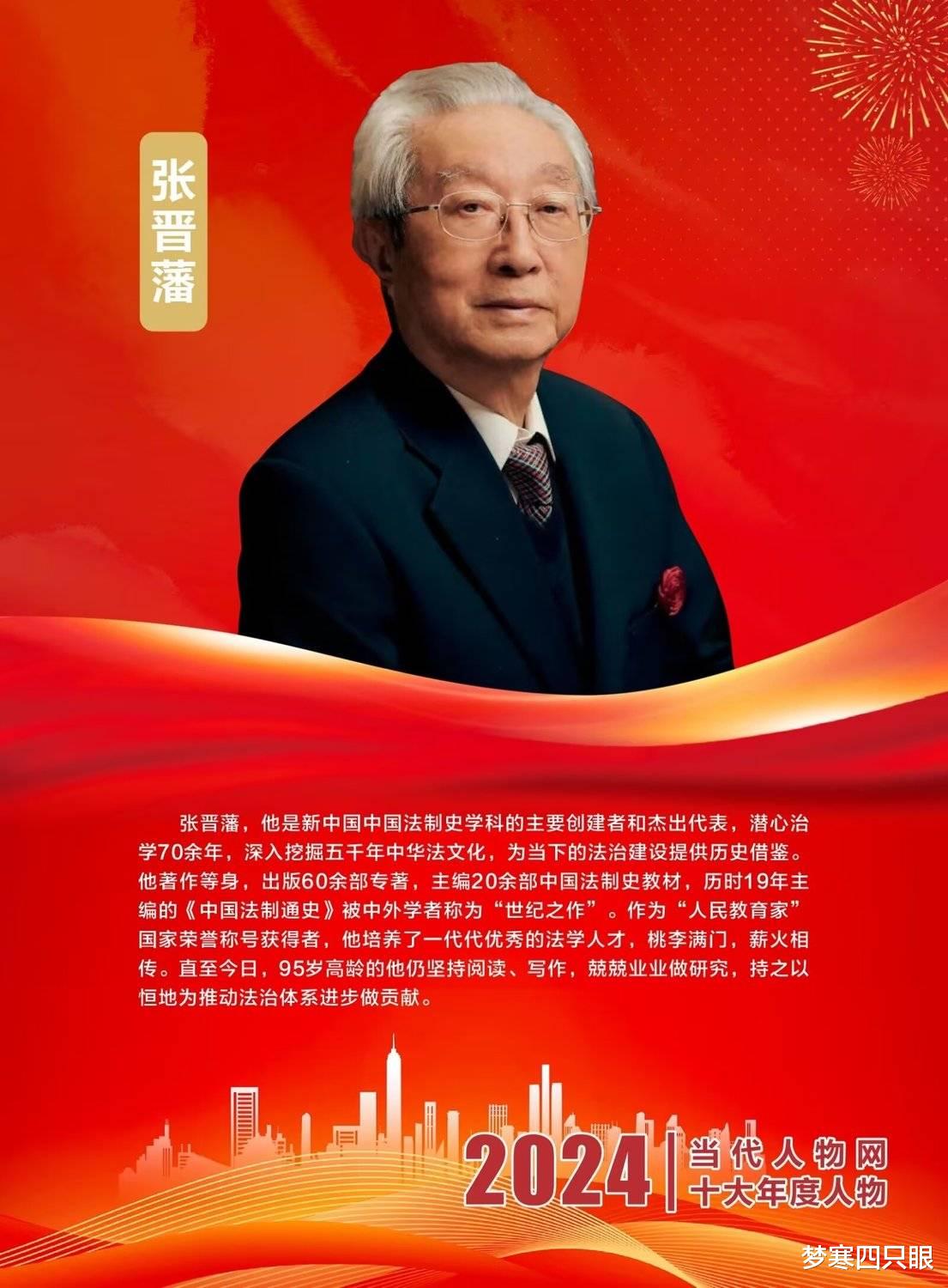 ▋颁奖词:张晋藩,他是新中国中国法制史学科的主要创建者和杰出代表,潜心治学 70 余年,深入挖掘五千年中华法文化,为当下的法治建设提供历史借鉴。他著作等身,出版 60 余部专著,主编20余部中国法制史教材,历时19年主编的《中国法制通史》被中外学者称为“世纪之作”。作为“人民教育家”国家荣誉称号获得者,他培养了一代代优秀的法学人才,桃李满门,薪火相传。直至今日,95岁高龄的他仍坚持阅读、写作,兢兢业业做研究,持之以恒地为推动法治体系进步做贡献。