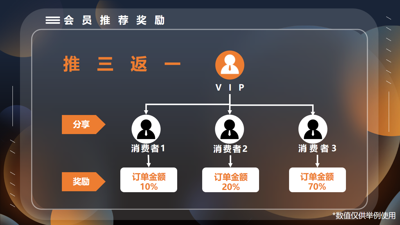 健康问题对客户来说是 “刚需且谨慎” 的 —— 买保健品、健康礼盒,客户不会轻易相信广告,反而更相信 “熟人推荐”。比如张女士推荐闺蜜买胶原蛋白肽,闺蜜会因为 “张女士用过且觉得好” 而直接下单,省去了 “说服客户、建立信任” 的复杂过程。而 “推三返一” 正好利用了这一点,让客户主动成为 “信任传递者”,大幅降低获客成本。
