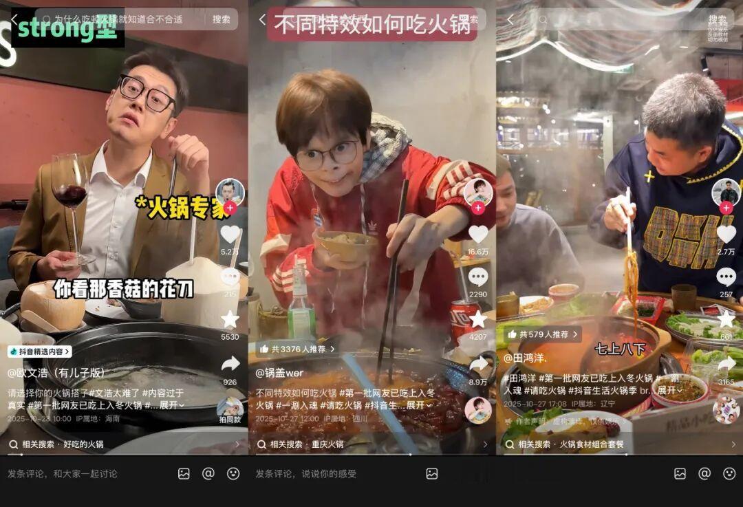 而当品牌的探索渐成趋势,一个更具公共性的叙事视角也在介入,比如抖音这样的平台,其承载的已远不止商家的自我表达,而是一个聚合了火锅最鲜活形象与讨论的“公共叙事场”,对于用优质内容“造势”,它有着天然的优势。
