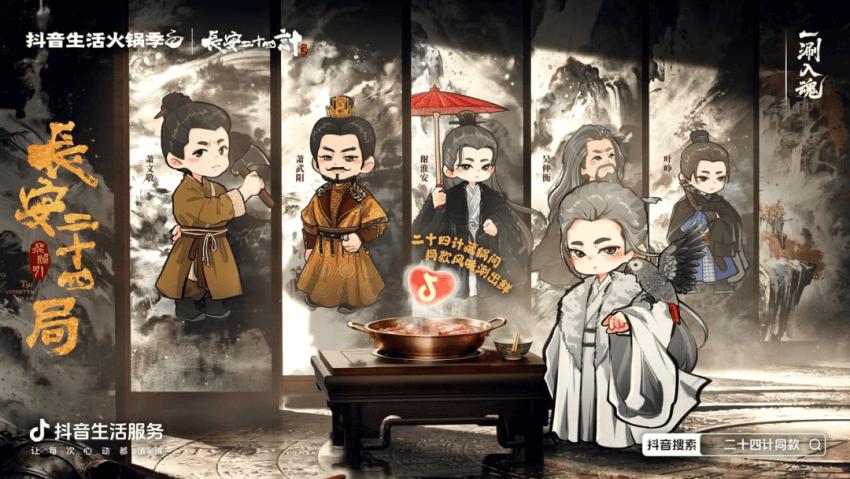 更进一步,活动还借势热门影视IP《长安二十四计》,联动沙胆彪、呷哺呷哺、朱光玉等24家火锅品牌推出联名产品。这不仅在社交平台引发了大规模“自来水传播”,更通过“联名品+直播”的整合营销,在活动期间创造了可观的销售转化。实现了平台流量转化、商家营收提升和文化IP破圈传播的三方共赢。