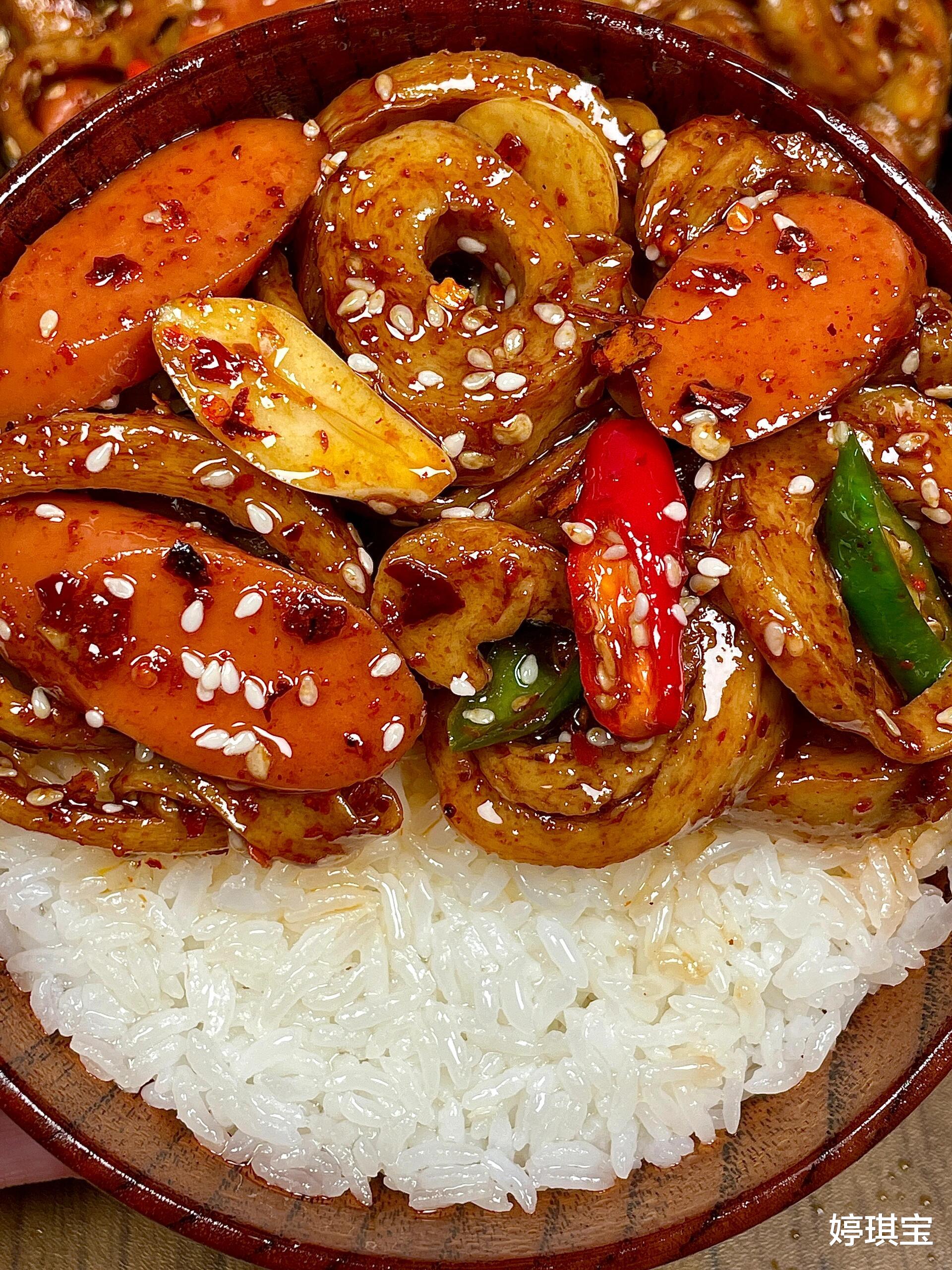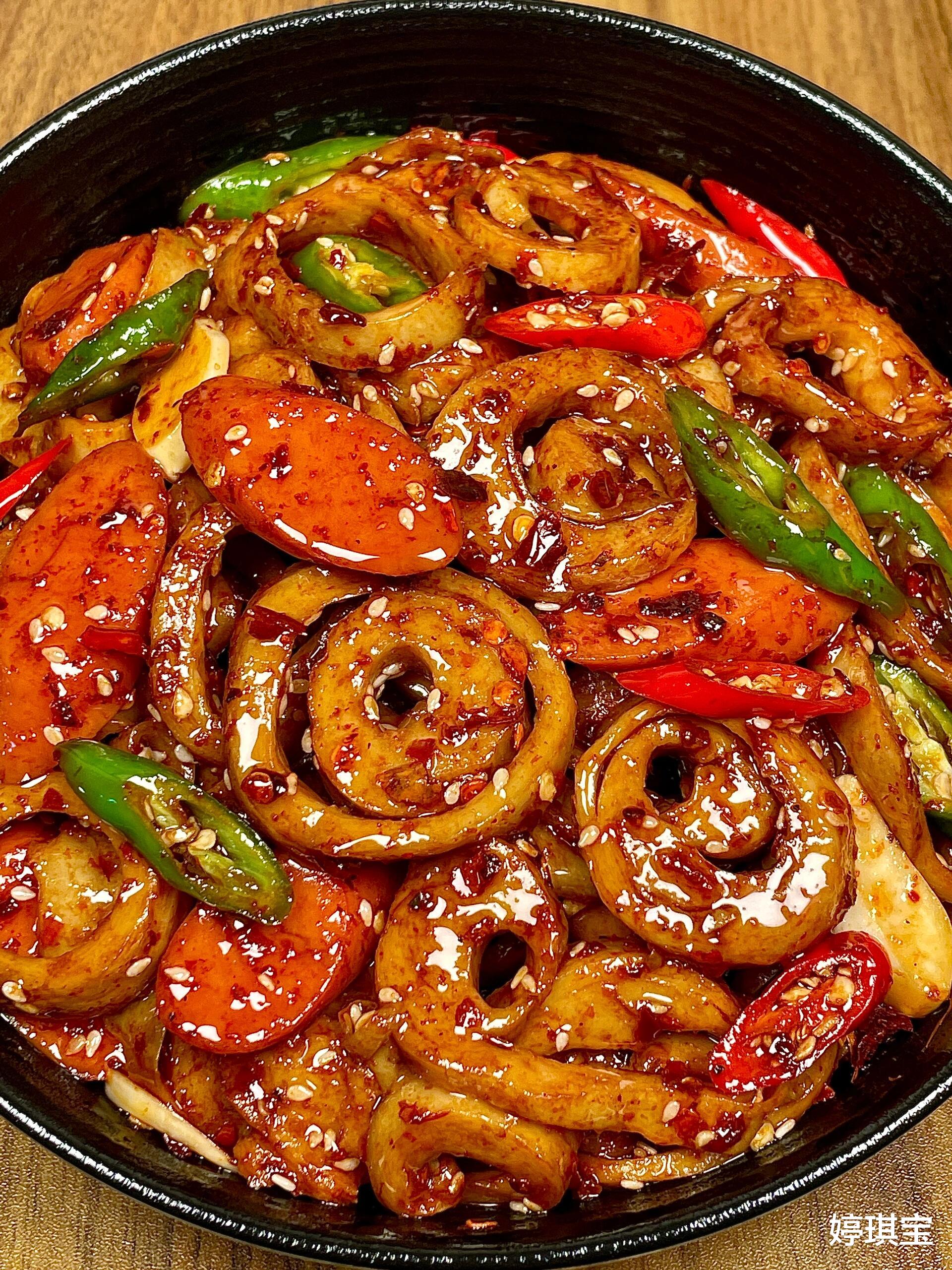 今晚不妨炒个面筋火腿肠吧!让它那街头风味带你重温学生时代的美好时光。记得要多炒些,因为这菜实在是——太下饭啦!