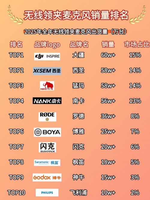 无线领夹麦克风哪个牌子的好?想精准选中适合自己的款?接下来就帮大家扒一扒2026领夹麦TOP10里,那些跳出流量内卷、真靠实力上榜的机型,教你用最简单的方法选到兼顾效果和性价比的好麦。