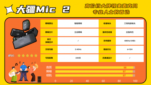 推荐②大 疆DJI Mic 2无线领夹麦克风