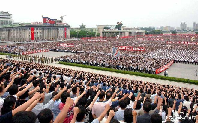 2013年6月25日,平壤的金日成广场上人潮涌动,十万余名朝鲜群众身着节日盛装,高举着标语,参加了纪念朝鲜战争爆发63周年的盛大集会。