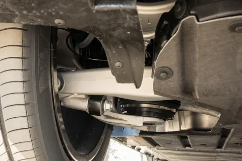 四驱版配备空气悬架和EDC可变魔毯底盘,空悬行程100mm,可调节车身高低和悬架软硬。EDC减震器为保时捷同款的倍适登品牌,有150多年调校经验,内部精密电磁阀能根据路况实时调整阻尼力,响应速度比传统减震器快60%。