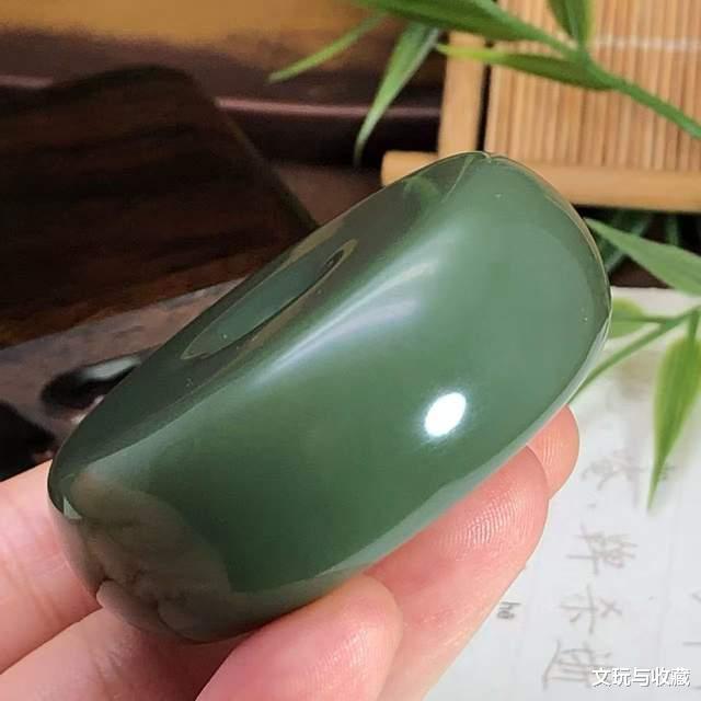 过灯无结构的致密质地,说明玉料经历了足够长时间的地质作用;油绿浓郁的色调反映铁元素含量的恰到好处;百克以上的体量兼具把玩手感与陈设气场。
