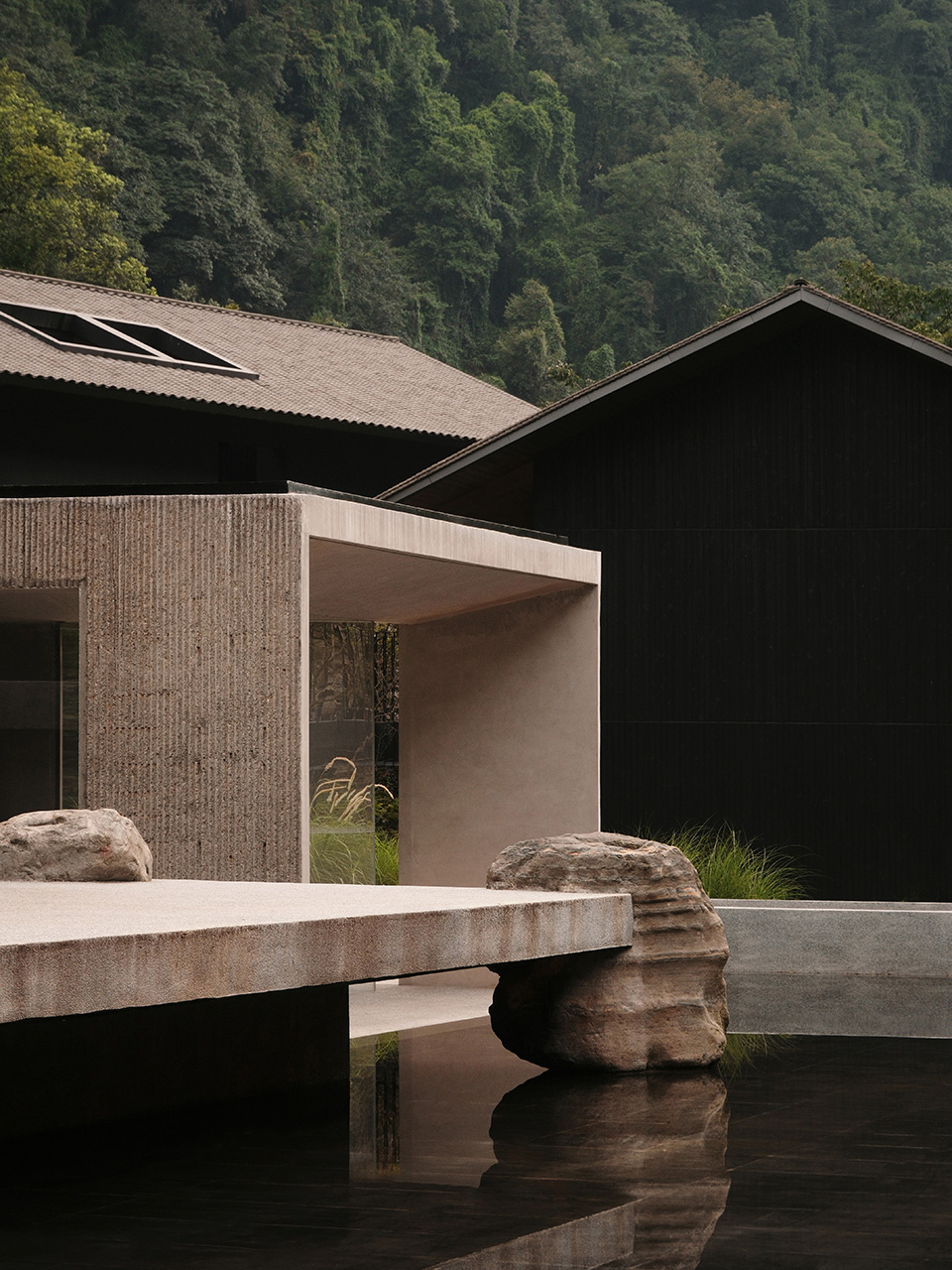 艺加设计和您一起赏析岚域峨眉山酒店设计,建筑设计从场地地形与传统文化中汲取灵感。整体布局以错落有致的村落式形态展开,呼应依山而建的石屋聚落。传统坡屋顶与深挑檐被重新演绎,以当代语汇连接过去与现在。