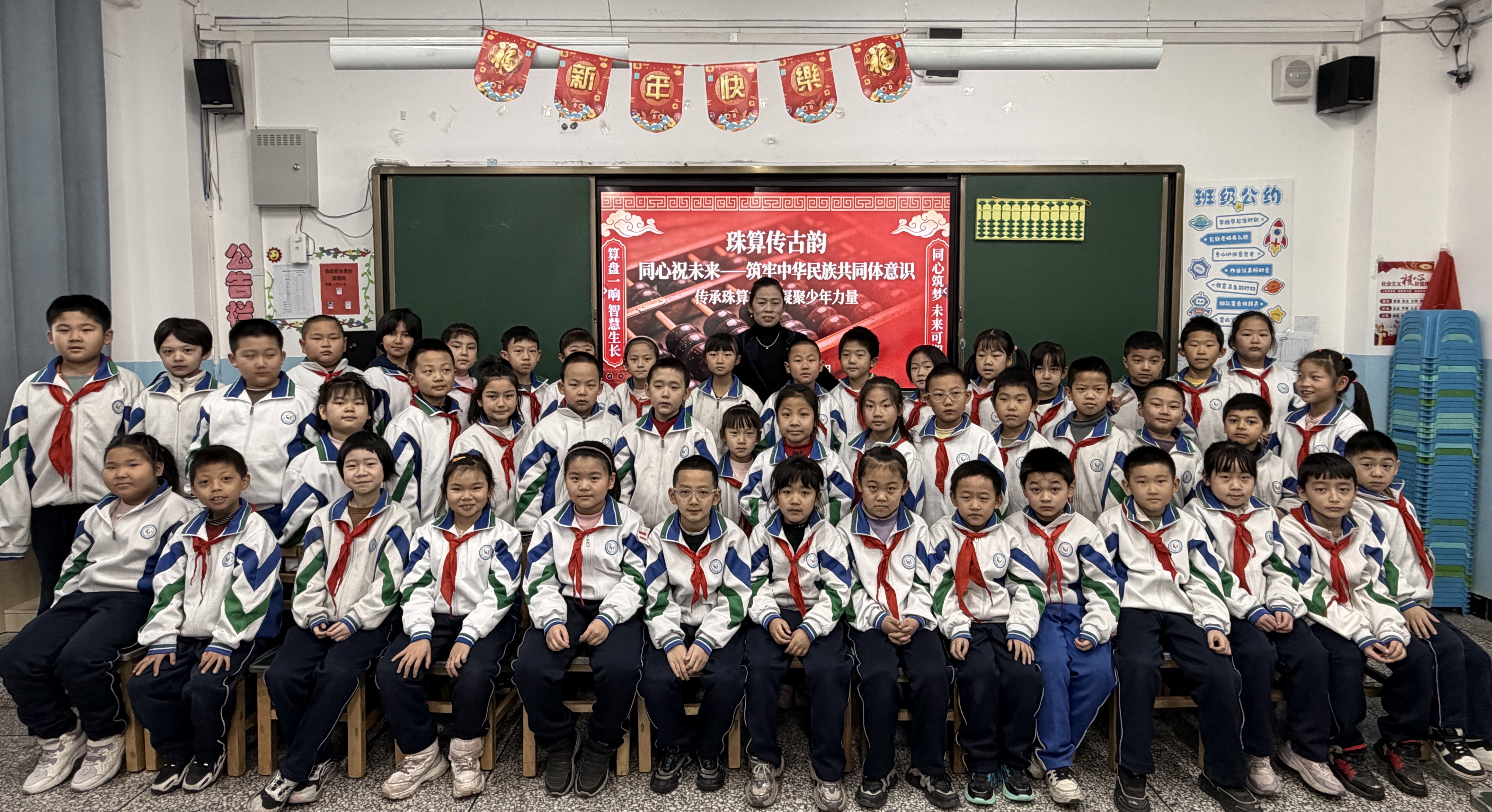 活动最后,全体师生手持算盘合影留念,一张张笑脸定格美好瞬间,清脆的算珠声与欢快的笑声交织,成为校园里最美的风景。