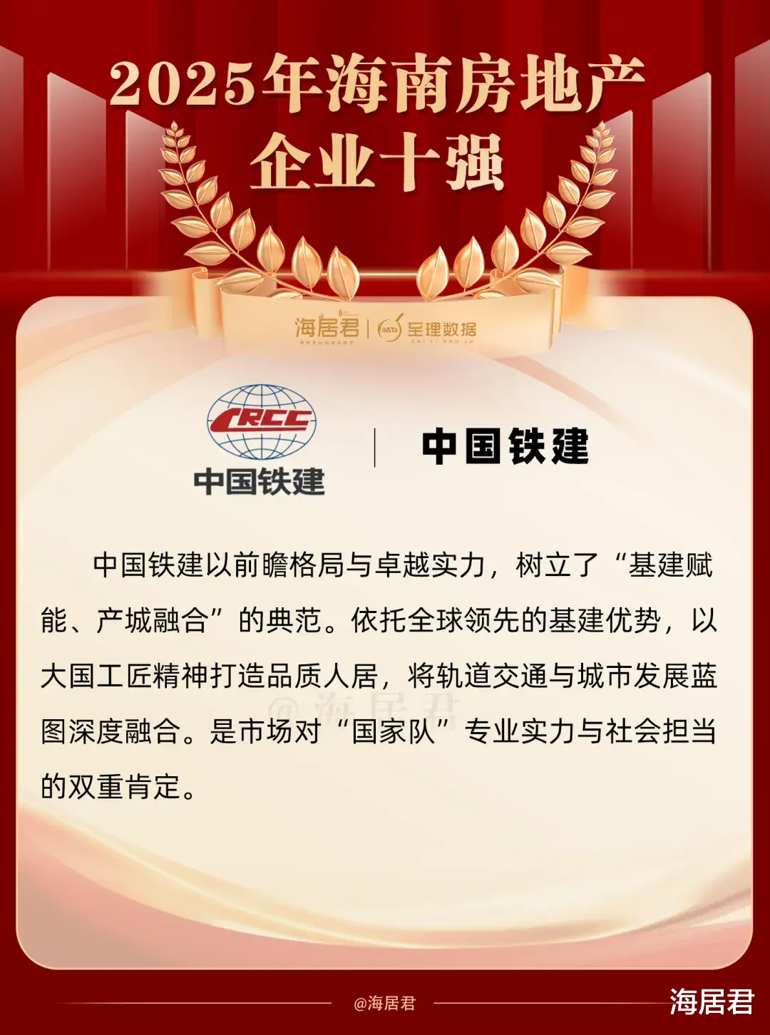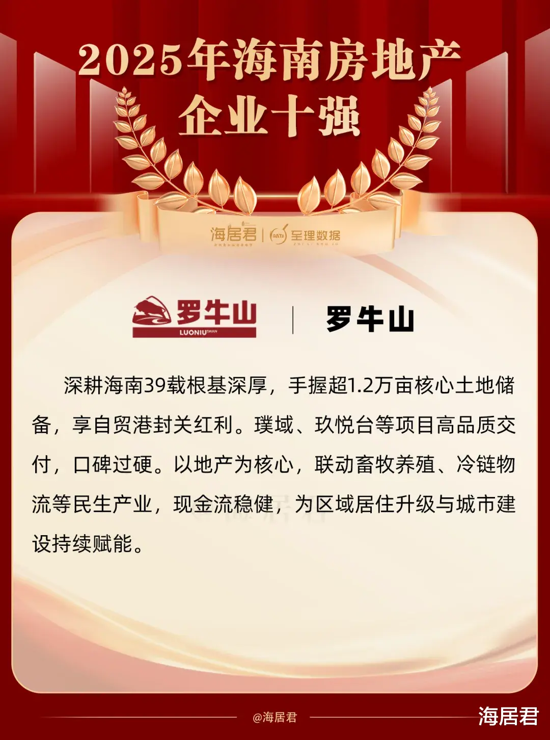 海居君&至理数据认为,2025年的海南楼市,安居房、书包房、高端住宅、旅居产品依然是主旋律,城市更新是市场的重要抓手,2025年海南房地产企业十强,在上述领域,堪称业界典范。