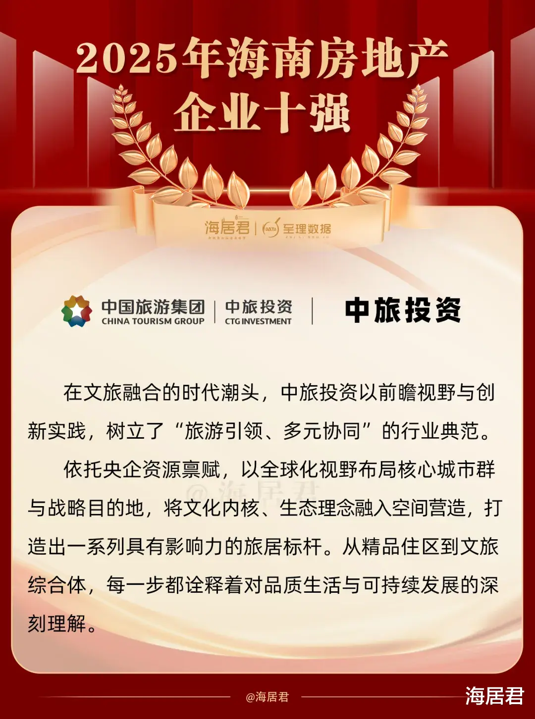 海居君&至理数据认为,海南自贸港已经启动全岛封关,海南的住房市场需要更多专注于解决本地居民住房、英才住房、高净值人群住房、旅居市场需求的开发企业,2025年海南房地产企业十强在这些方面,都做出了积极表率。