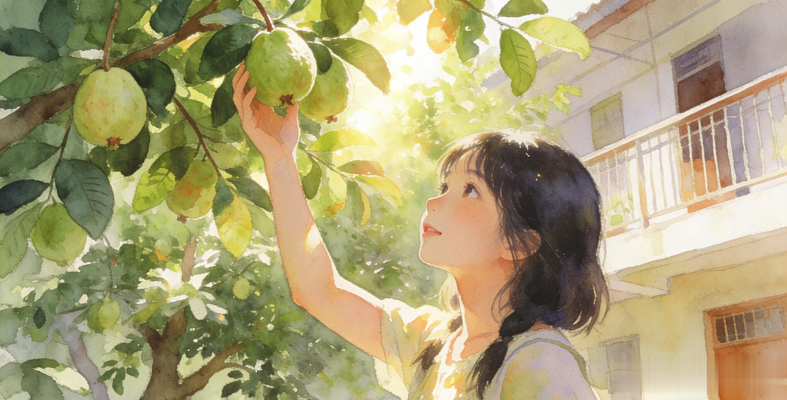 番石榴树的绿荫里,小女孩咬着酸甜的果子,心里却惦记着那件被遗落在二楼房间的东西。前几日在这里玩耍时,东西被人带进了那间屋子,她望着二楼的窗口,心里掠过翻窗的念头,可瞥见墙角的摄像头,便悻悻地打消了这个想法。