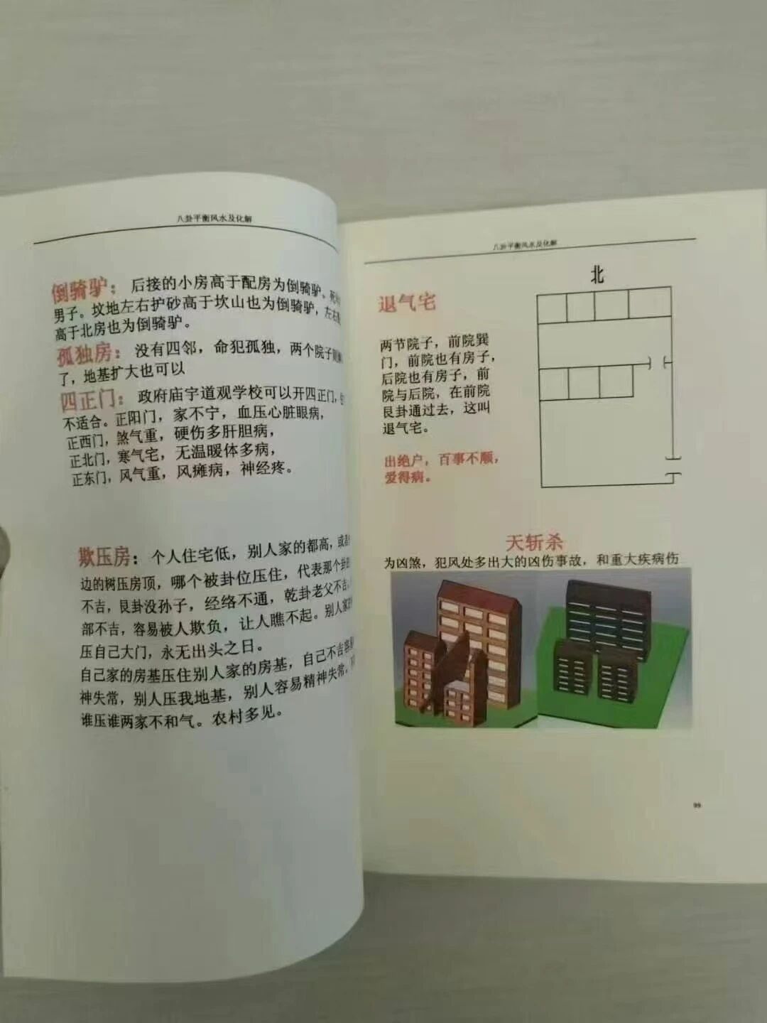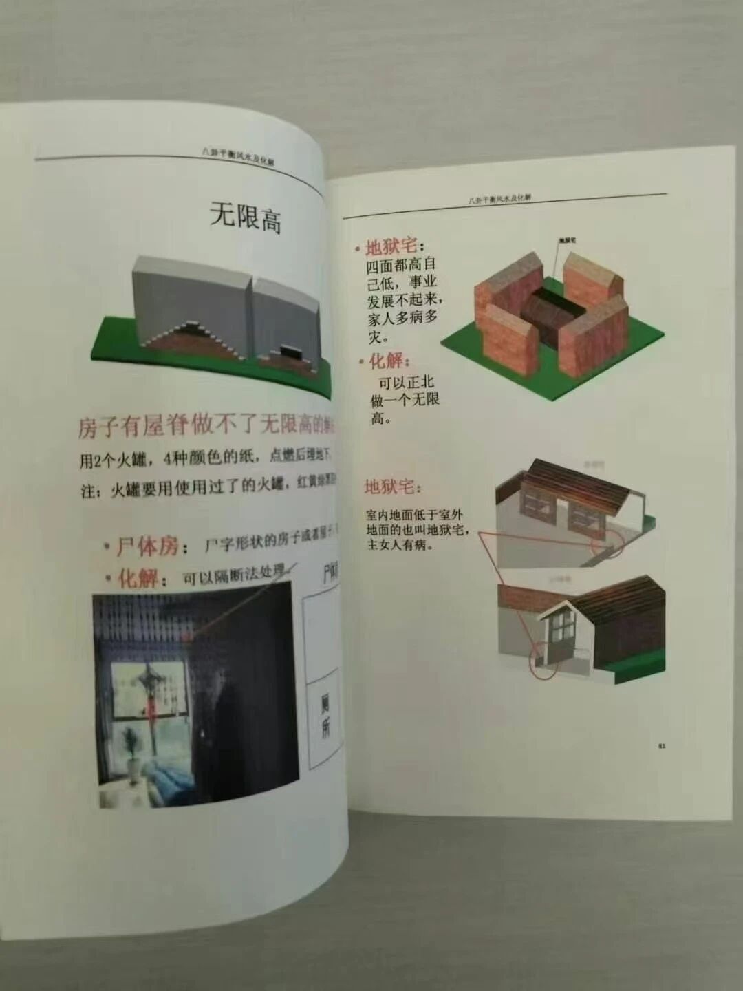 而 “实用化解” 则是全书的核心价值所在。针对家居中常见的风水问题,如某卦位缺角导致的运势失衡、窗外路冲形成的煞气干扰、户型布局引发的气场紊乱等,书中都给出了具体可操作的化解方案:小到八卦镜、水晶阵等摆件的摆放位置与寓意,大到不同卦位适配的装饰色彩(如艮位宜用土色系增强稳定气场)、户型改造的简易建议(如缺角处如何用家具弥补),每一种方法都搭配彩色高清图示,步骤清晰到 “照做即可”。比如讲解 “坎位煞气化解” 时,不仅说明需用金属性摆件调和,还附上摆件摆放的实景彩图,让读者无需猜测,直接落地应用。