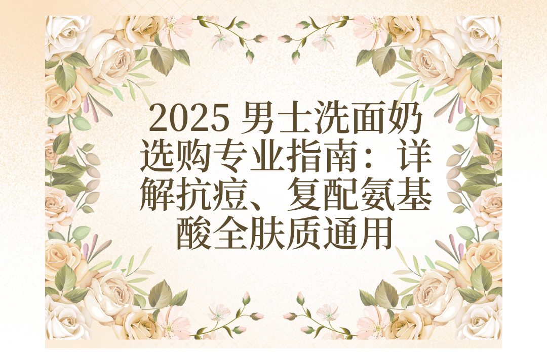 四、总结:2025 男士洁面选购核心公式结合实测数据与肤质需求,总结选购公式:复配氨基酸表活 + 针对性功效成分 + 权威认证 = 适合你的洁面。具体建议: