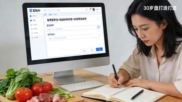 “我擅长【家常菜烹饪】,喜欢【低成本快手菜】,目标粉丝是【30 岁职场女性】,帮我分析这个定位的竞争度和 3 个内容方向”(直接复制给豆包 / DeepSeek)。
