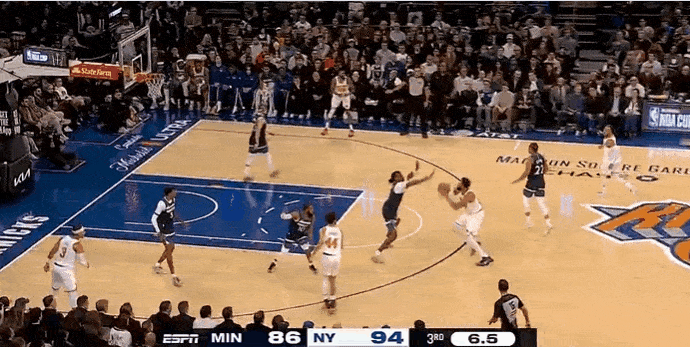 NBA常规赛,森林狼对阵尼克斯的比赛正在进行中。