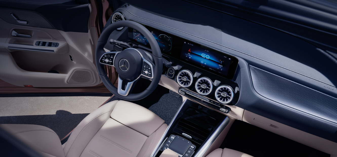 内饰部分,2025款改款奔驰EQA内饰仪表盘和中控屏幕采用连体式设计,并配备三辐式方向盘以及怀挡式换挡机构。同时增加了自适应巡航以及电动尾门(带感应开启功能)。此外,记录仪、前排座椅加热等则可进行选装。新车提供黑色、可可棕色、鼠尾草灰色/黑色内饰。