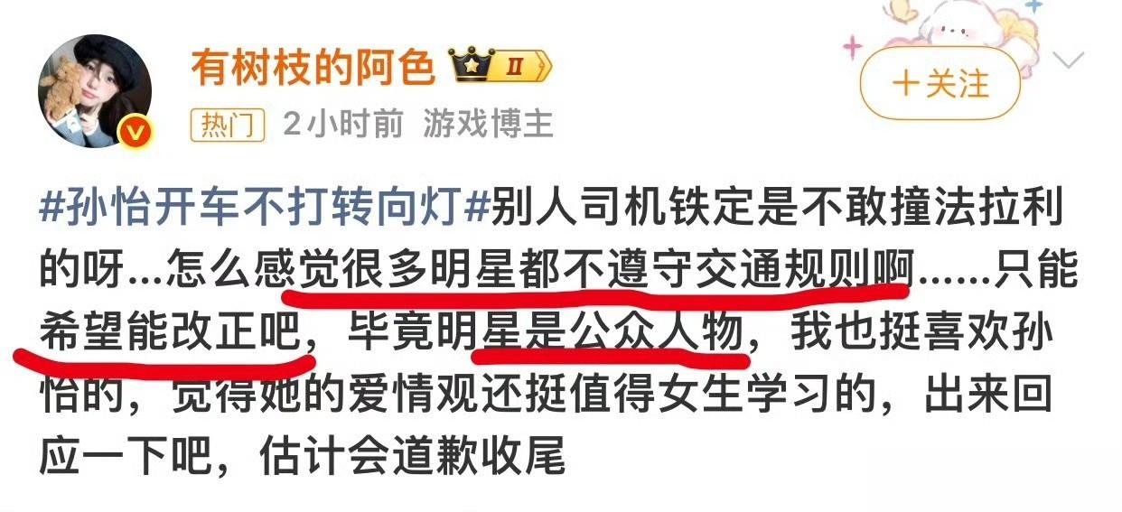 孙怡的认错态度虽值得肯定,但明星作为公众人物,示范效应强大,一举一动都可能被模仿。